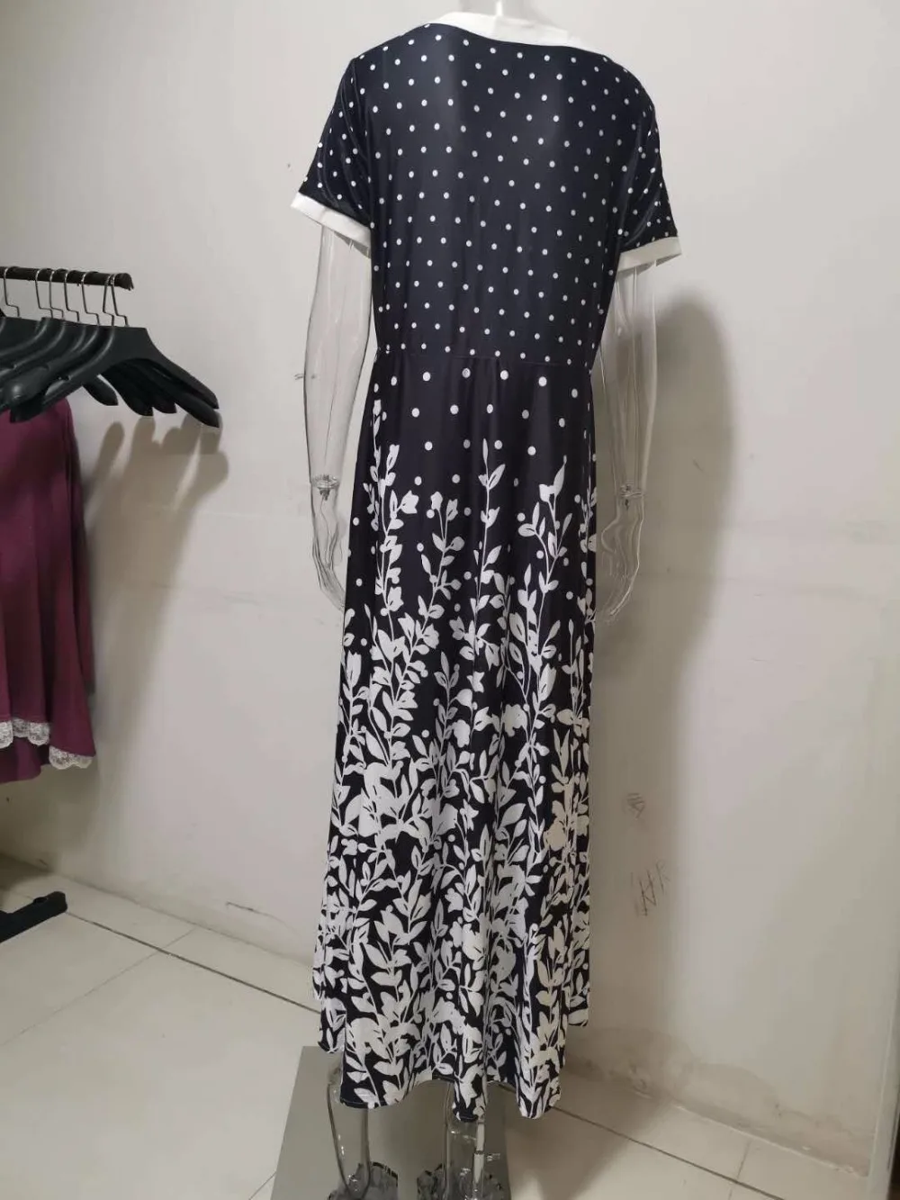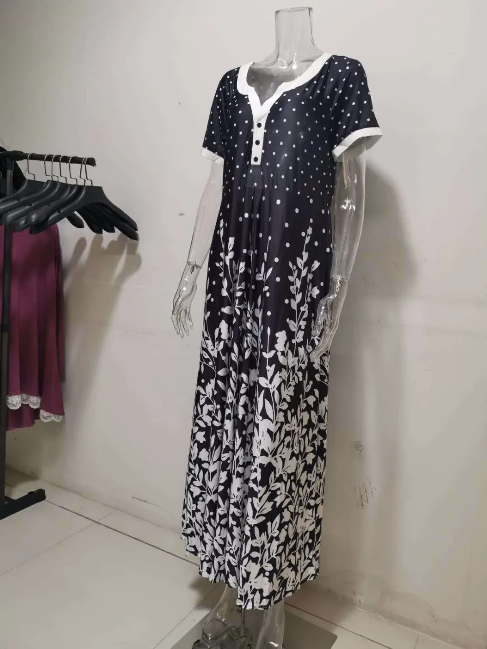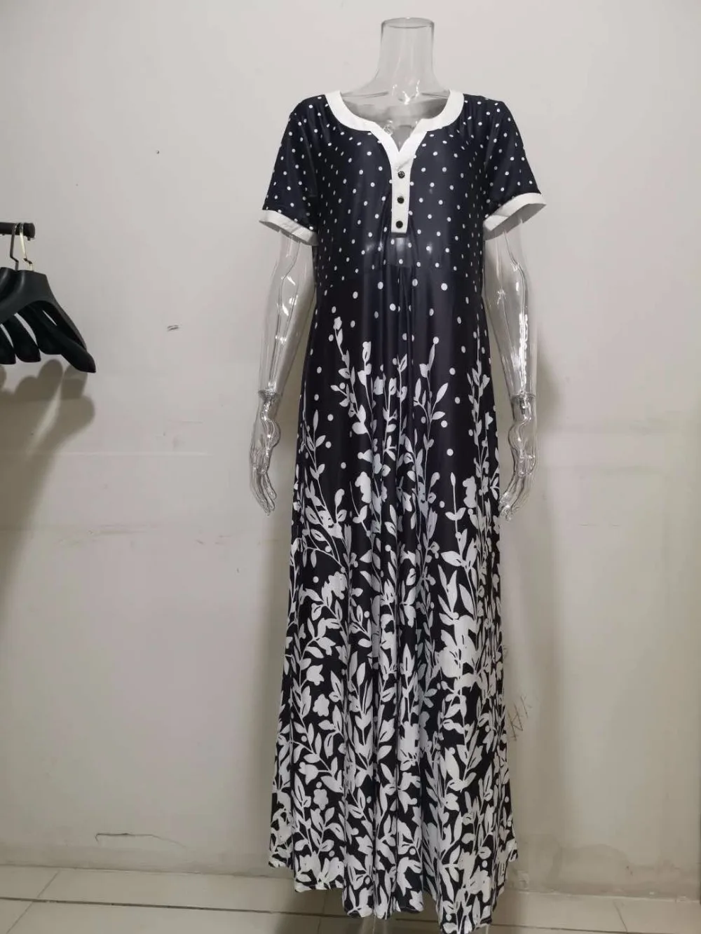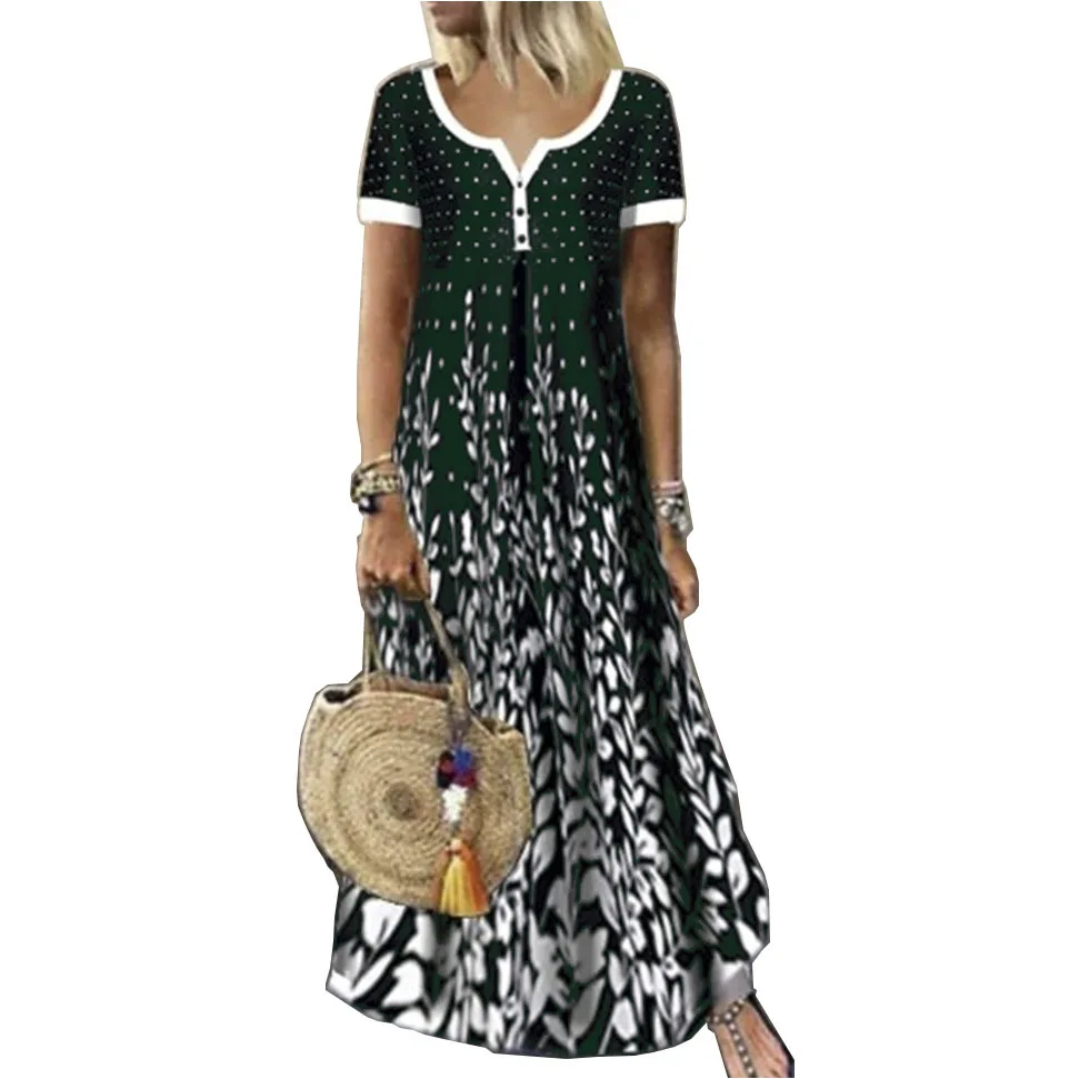 Spring Summer Casual Women Dress V-neck Short Sleeve Loose Long Dress Button Cotton Maxi Dress ETSTWENDY Women Clothing Vestidos