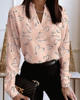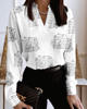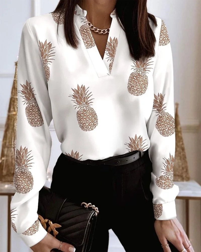 Spring Summer Fashion New Women's V-neck Long-sleeved Solid Color Shirt Office Lady Chain Printed Pullover Blouse Femme Blusas