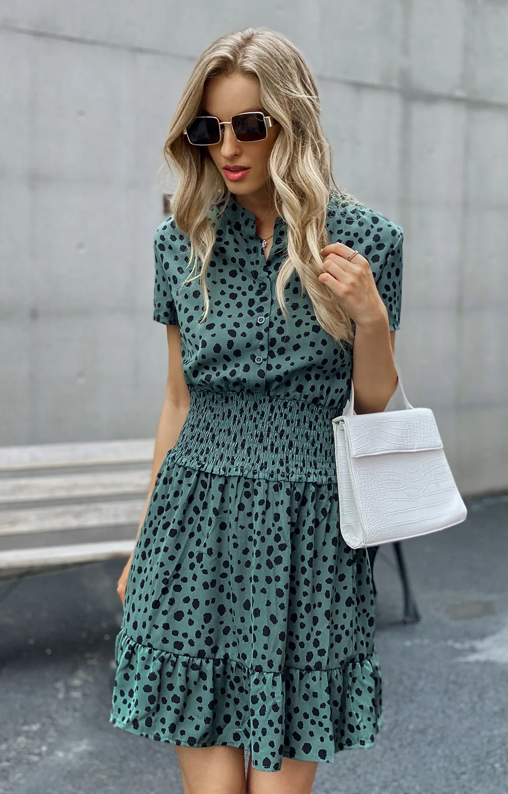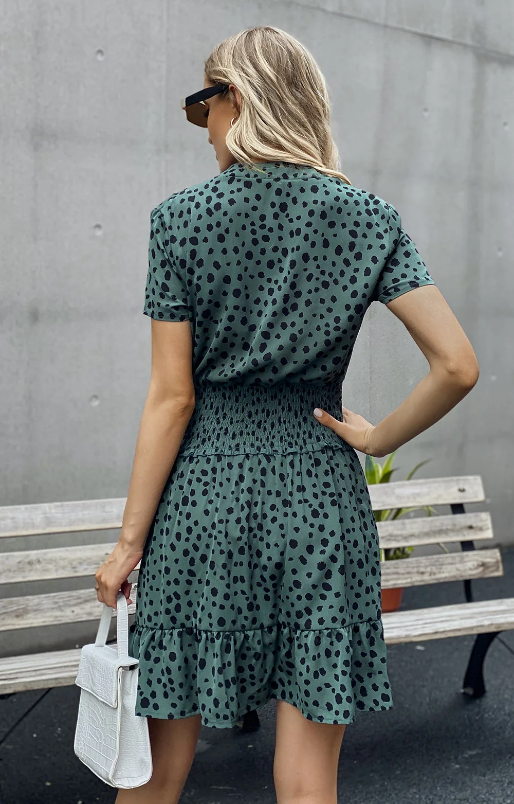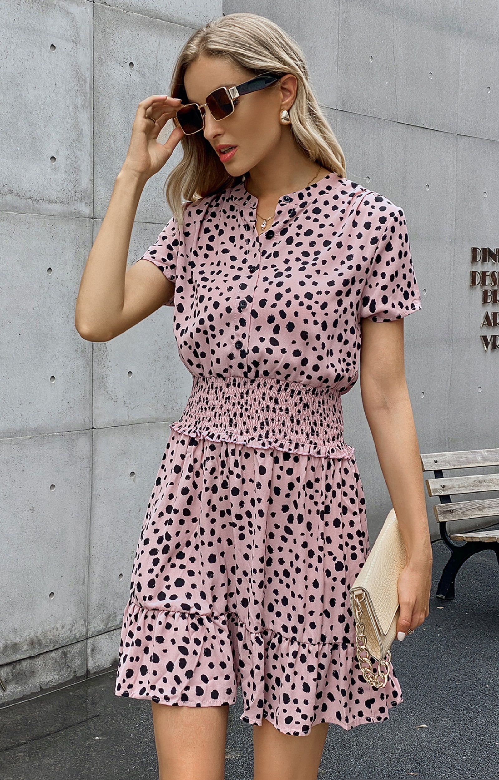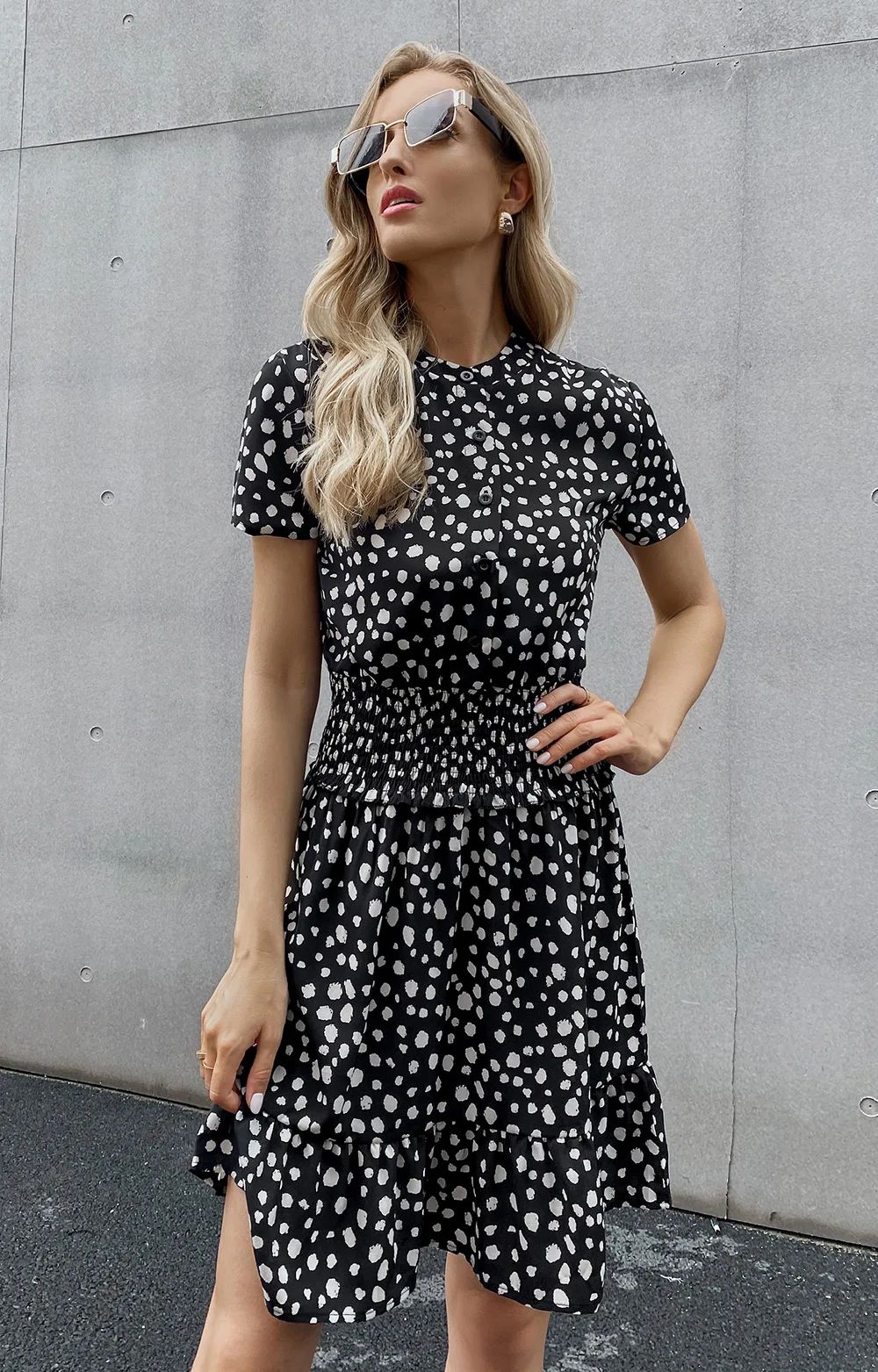 Spring Summer Female Wave Dot Print Slim Short Dresses Elegant Womens Clothing Fashion Waist Short Sleeve Ladiies Dress