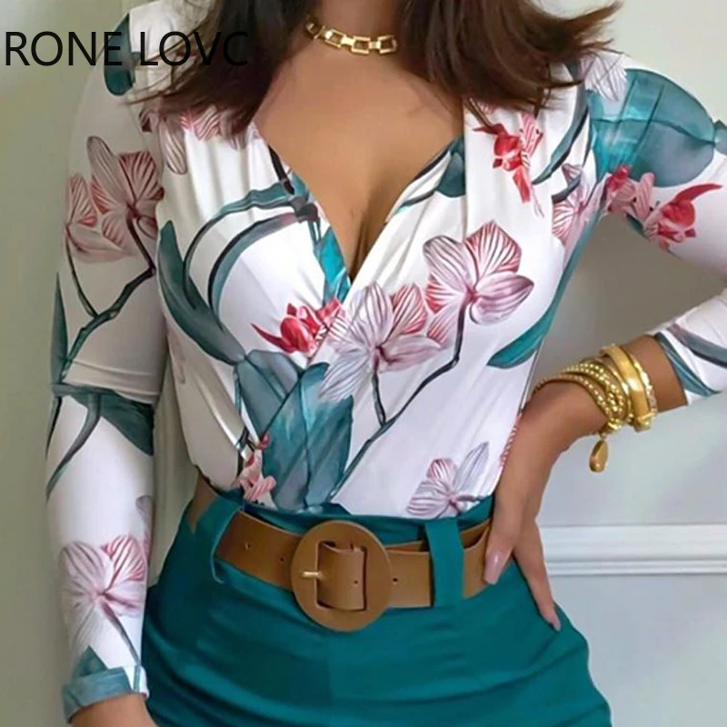 Spring Women Flower Printing Long Sleeve Pant Sets 2 Piece Set