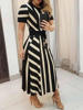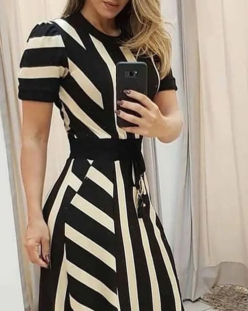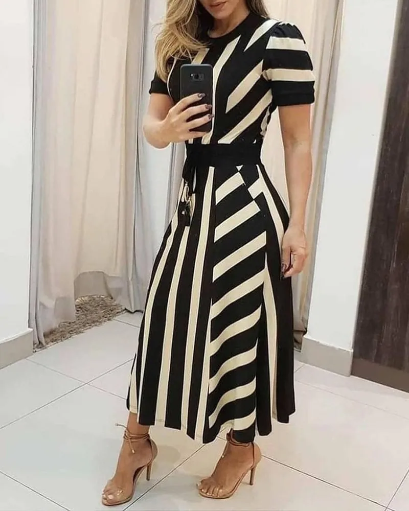 Striped Colorblock Short Sleeve Maxi Dress Women Casual Daily Long Dresses