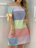 Striped Print Colorblock Off Shoulder Casual Dress Women