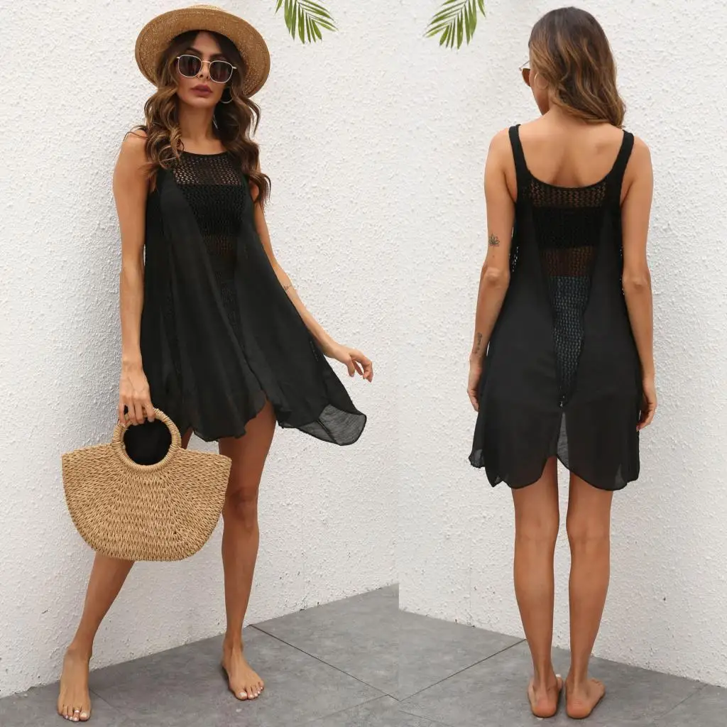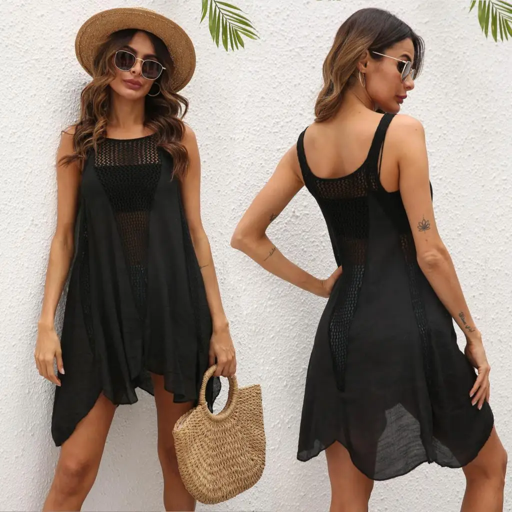 Summer 2021 women's skirts hand hook stitching irregular large swing vest beach skirt dress blouse