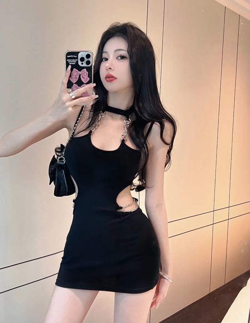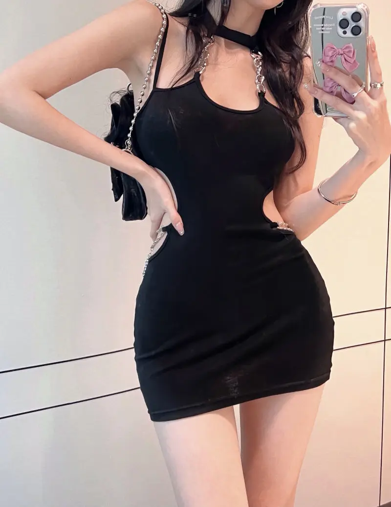 Summer 2022 New Design Suspender Dress Temperament Sexy Chain Buttock Wrapped Spice Girl Backless Women's Short Skirt