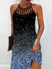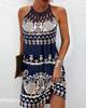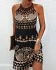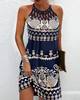 Summer 2022 New Women's Elegant Vintage Cutout Neck Sleeveless Halter Print Dress Round Neck Hollow Out Floral Sexy Party Dress
