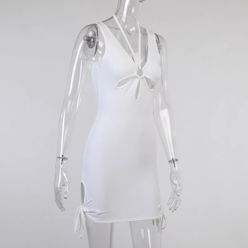 Summer Backless Bodycon Dress Women Hollow Out 2021 Bandage Mini Sleeveless White Black Sexy Party Dresses Beach