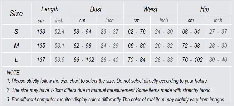 SizeBustWaistHipLength