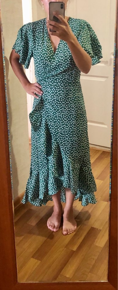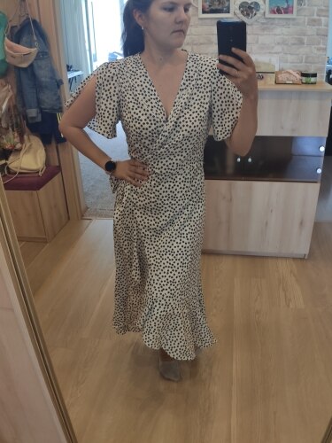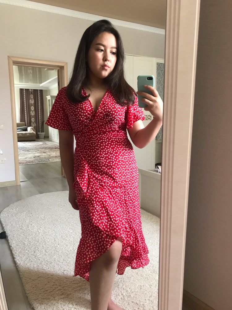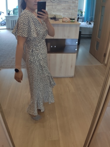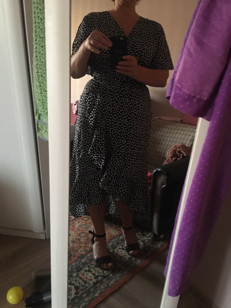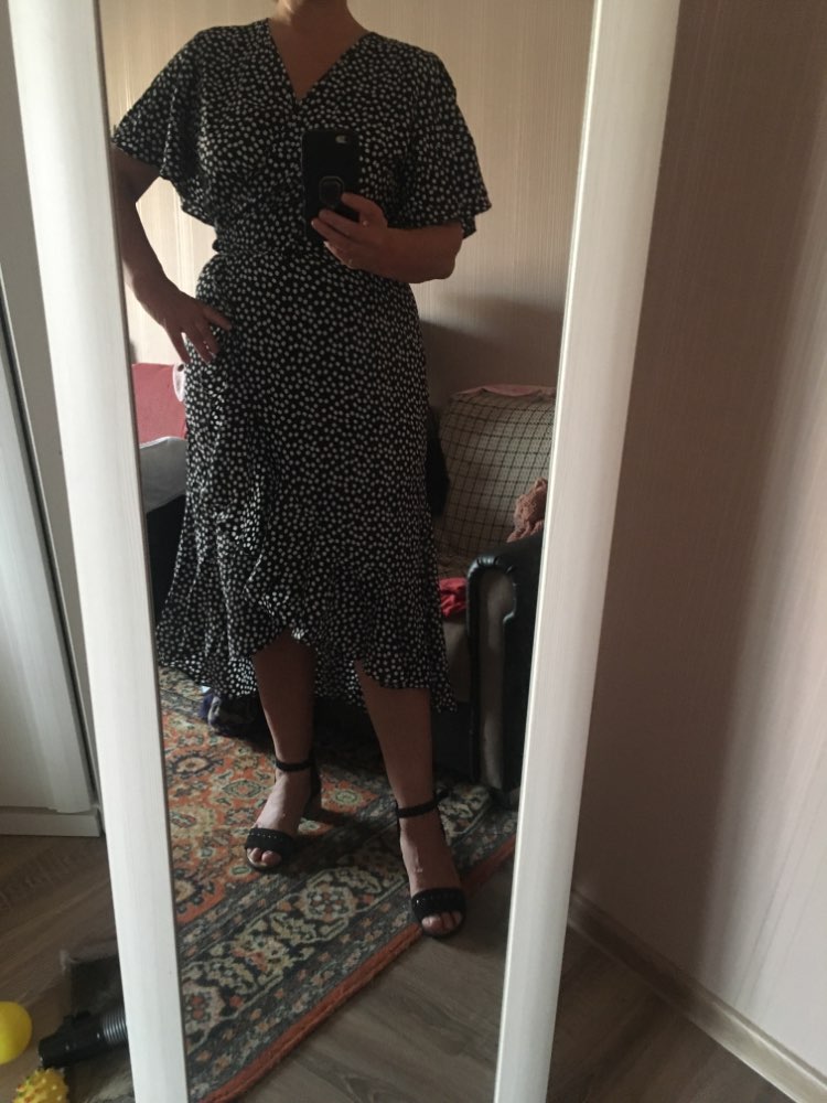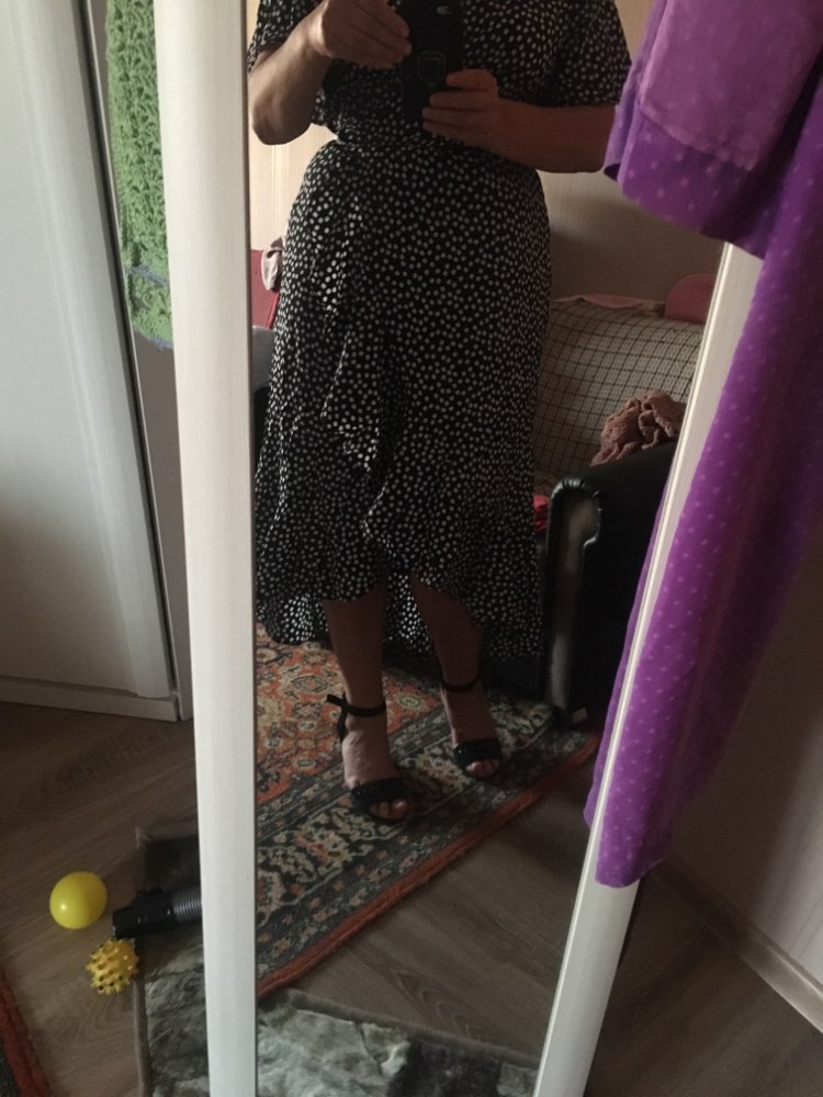 First, and most importantly, what I want to note is delivery. I ordered twice. The first dress (in late May) reached Moscow in 14 days, the second dress (in July) got it for only 7 (!!!) days, and this is a record among all my orders for AliExpress. Both times did delivery via 5post, both times the store sent the parcel within 2 hours of placing the order. Now about the dress. The model is very successful, feminine, relevant, suitable for everyone. Yes, it is 100% polyester. Yes, it does not look expensive. But, if you style correctly, it will look very cool: both with sneakers, and with sandals, and биркенштоками, and rough shoes, a sweater on top, a turtleneck under the bottom, a trench coat, a biker, a jacket, denim etc In general, the options are massive. The quality of tailoring is good, the seams are even, there are sticking threads on the belt, but this is solved in 2 minutes. In general, not hot, up to + 25-27 I was normal. Slightly shines through, so underwear is desirable to choose a flesh, seamless. The size corresponds to the table.