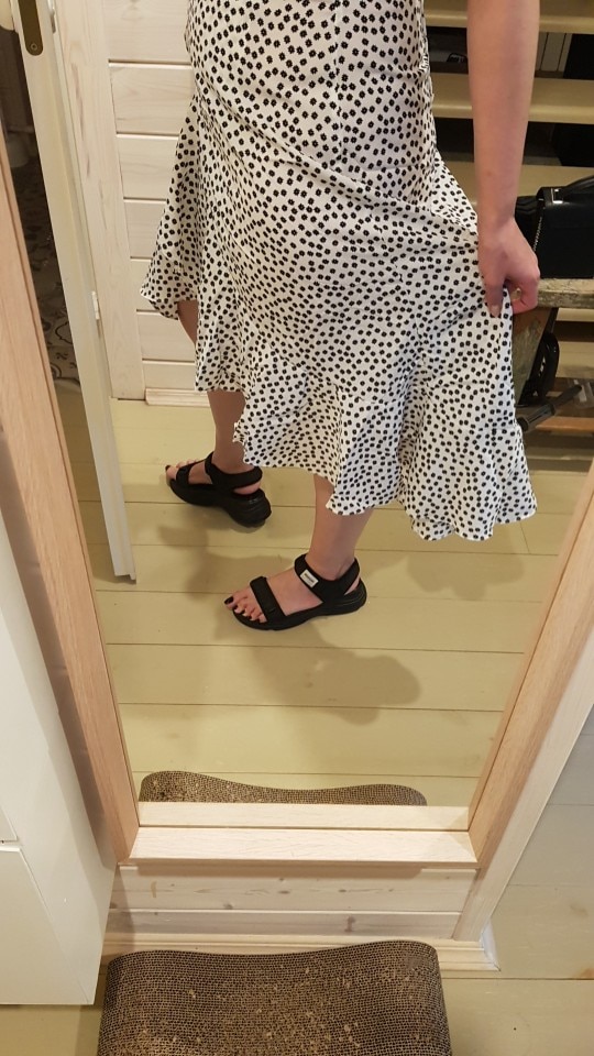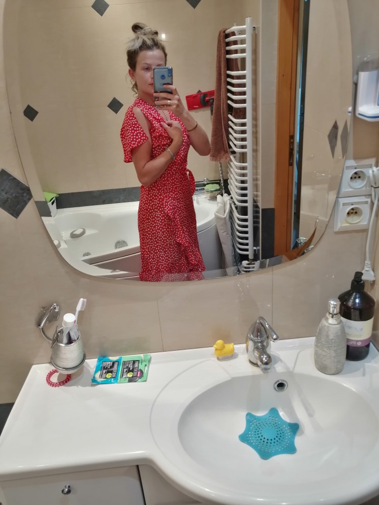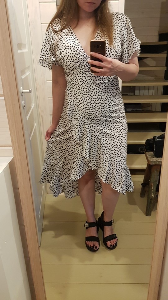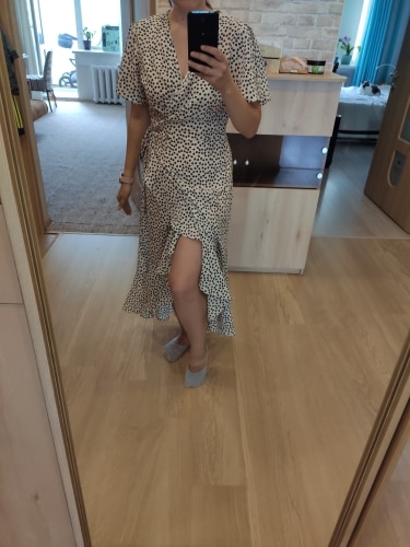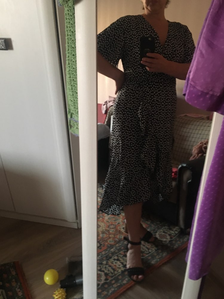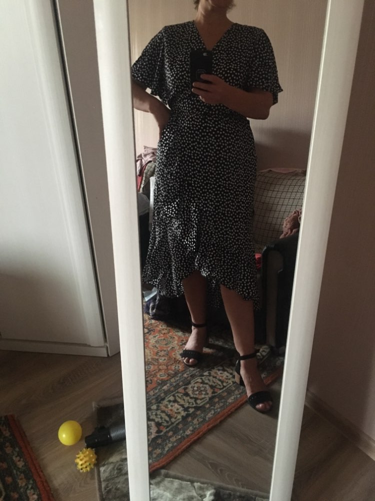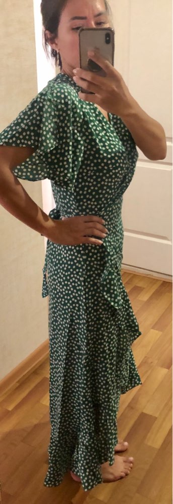 First, and most importantly, what I want to note is delivery. I ordered twice. The first dress (in late May) reached Moscow in 14 days, the second dress (in July) got it for only 7 (!!!) days, and this is a record among all my orders for AliExpress. Both times did delivery via 5post, both times the store sent the parcel within 2 hours of placing the order. Now about the dress. The model is very successful, feminine, relevant, suitable for everyone. Yes, it is 100% polyester. Yes, it does not look expensive. But, if you style correctly, it will look very cool: both with sneakers, and with sandals, and биркенштоками, and rough shoes, a sweater on top, a turtleneck under the bottom, a trench coat, a biker, a jacket, denim etc In general, the options are massive. The quality of tailoring is good, the seams are even, there are sticking threads on the belt, but this is solved in 2 minutes. In general, not hot, up to + 25-27 I was normal. Slightly shines through, so underwear is desirable to choose a flesh, seamless. The size corresponds to the table.