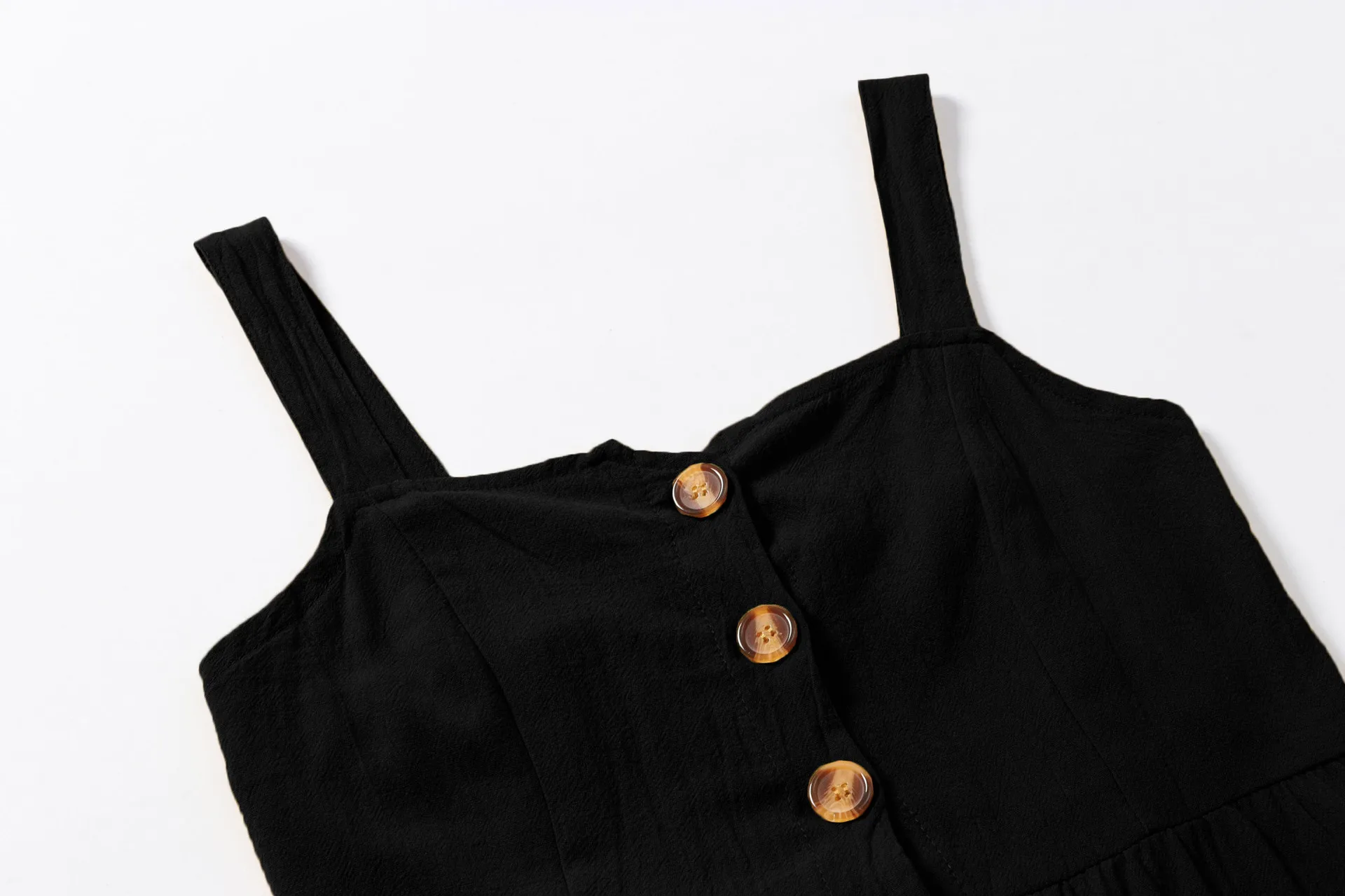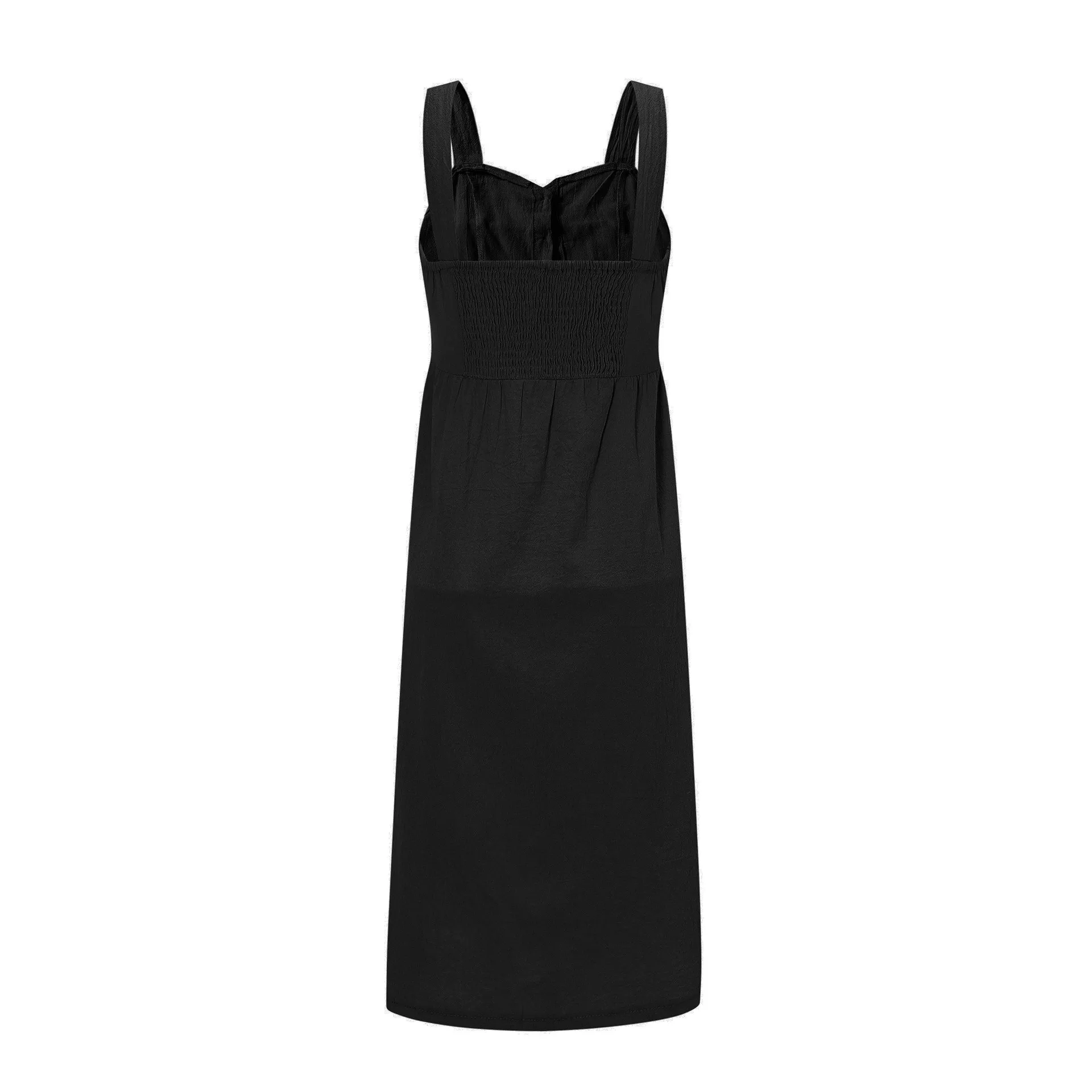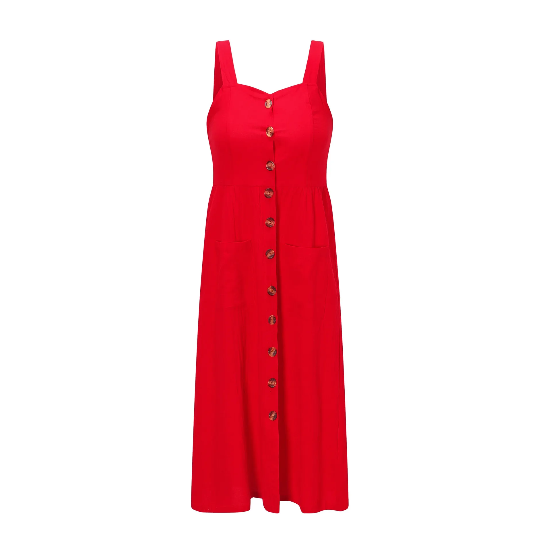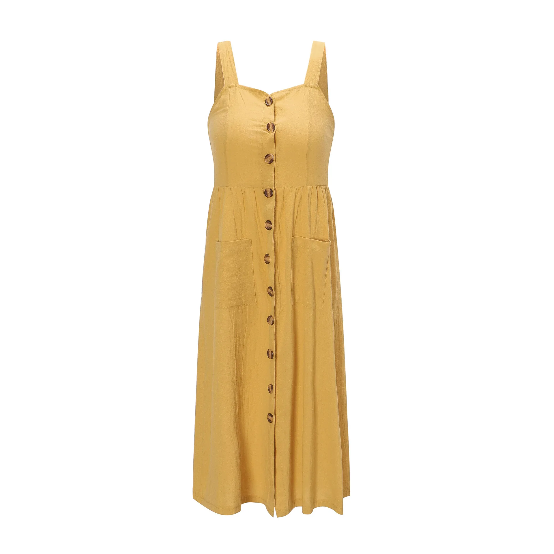 Summer Camisole Dress Women Elegant Wide Straps Single-breasted Midi Dress Female Fashion Pocket Slim Sun Dress Stretch bust
