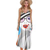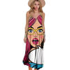 Summer Casual Ladies Robe Dress Cartoon Face Print Sexy Backless V-Neck Sling Casual Fashion Street Ladies Long Dress Vestido