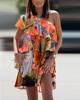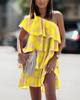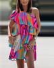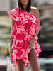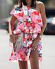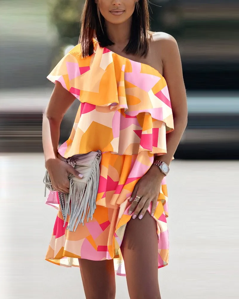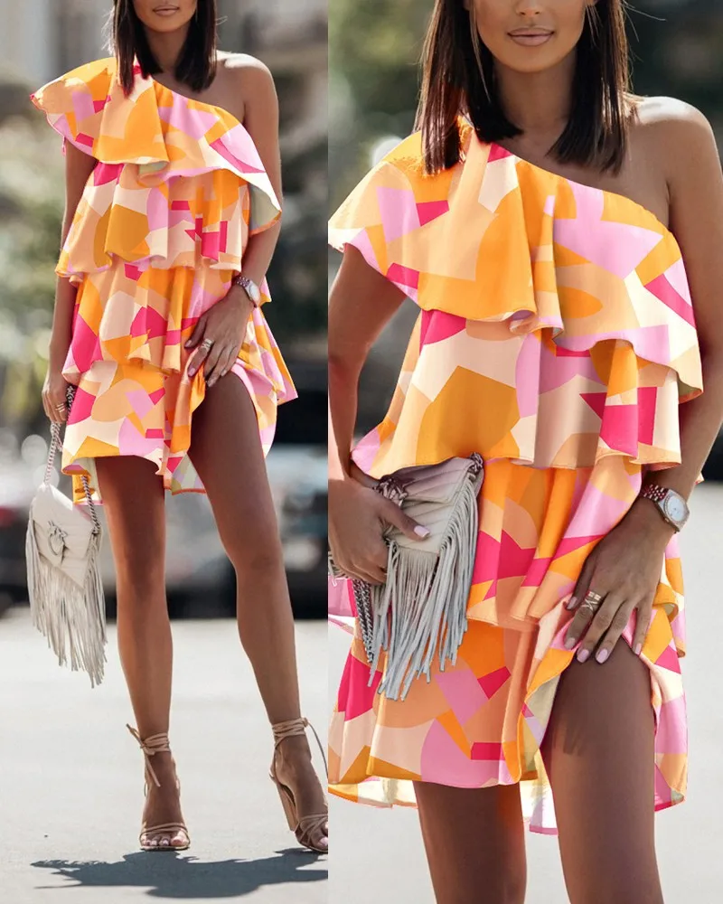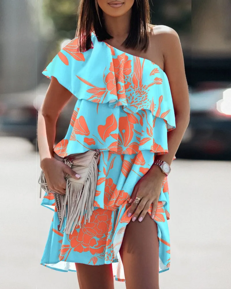 Summer Casual Print Ruffles Mini Dress Women 2022 Fashion Sexy Diagonal Collar Off Shoulder Dresses Woman Party Beach Dress