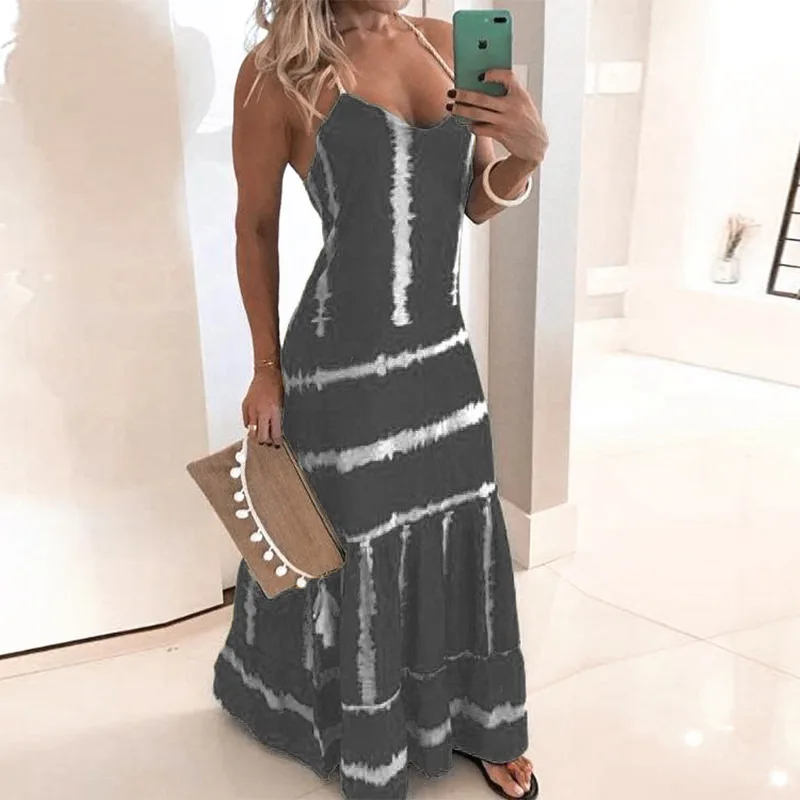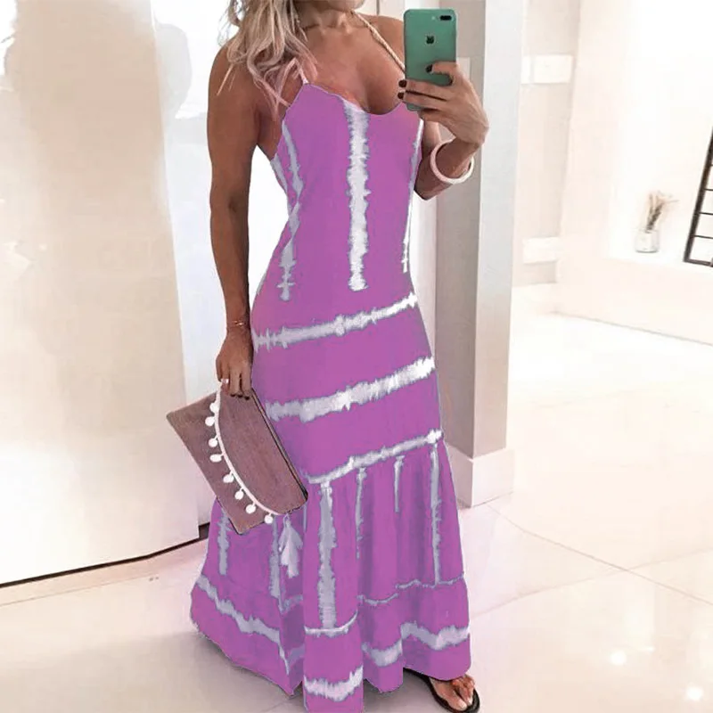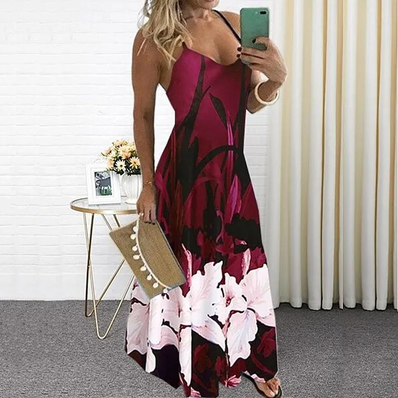 Summer Casual Women Maxi Dress Sexy Robe Floral Printed Long Dress Sleeveless V-neck 2021 Streetwear Women Dress Loose Vestidos