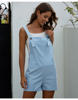Summer Casual Women Playsuits Spaghetti Strap Sleeveless Sexy Short Jumpsuit Pocket Backless Thin Women Summer Romper