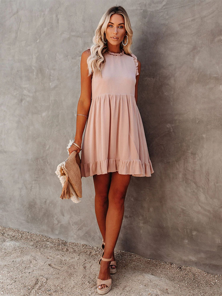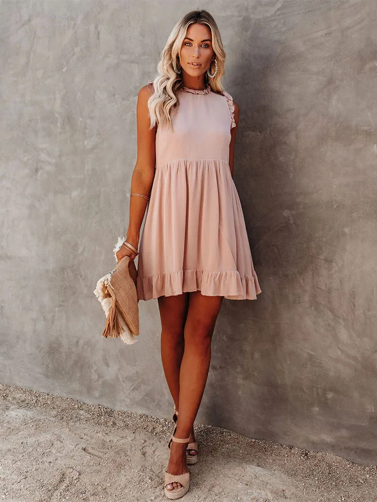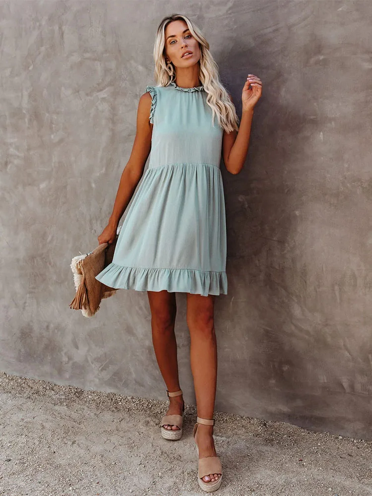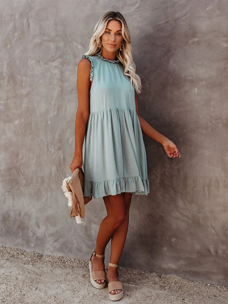 Summer Dress Women 2021 Sleeveless Sundresses Women Elegant Vintage Ladies Ruffle Beach Blue Mini Dresses