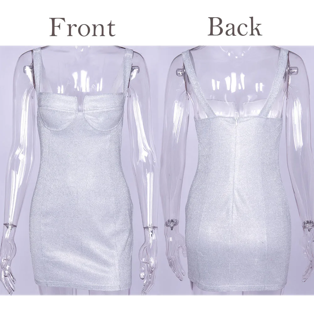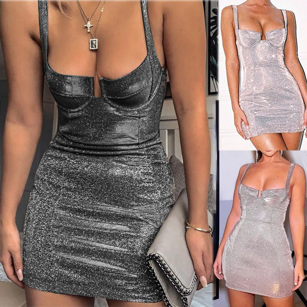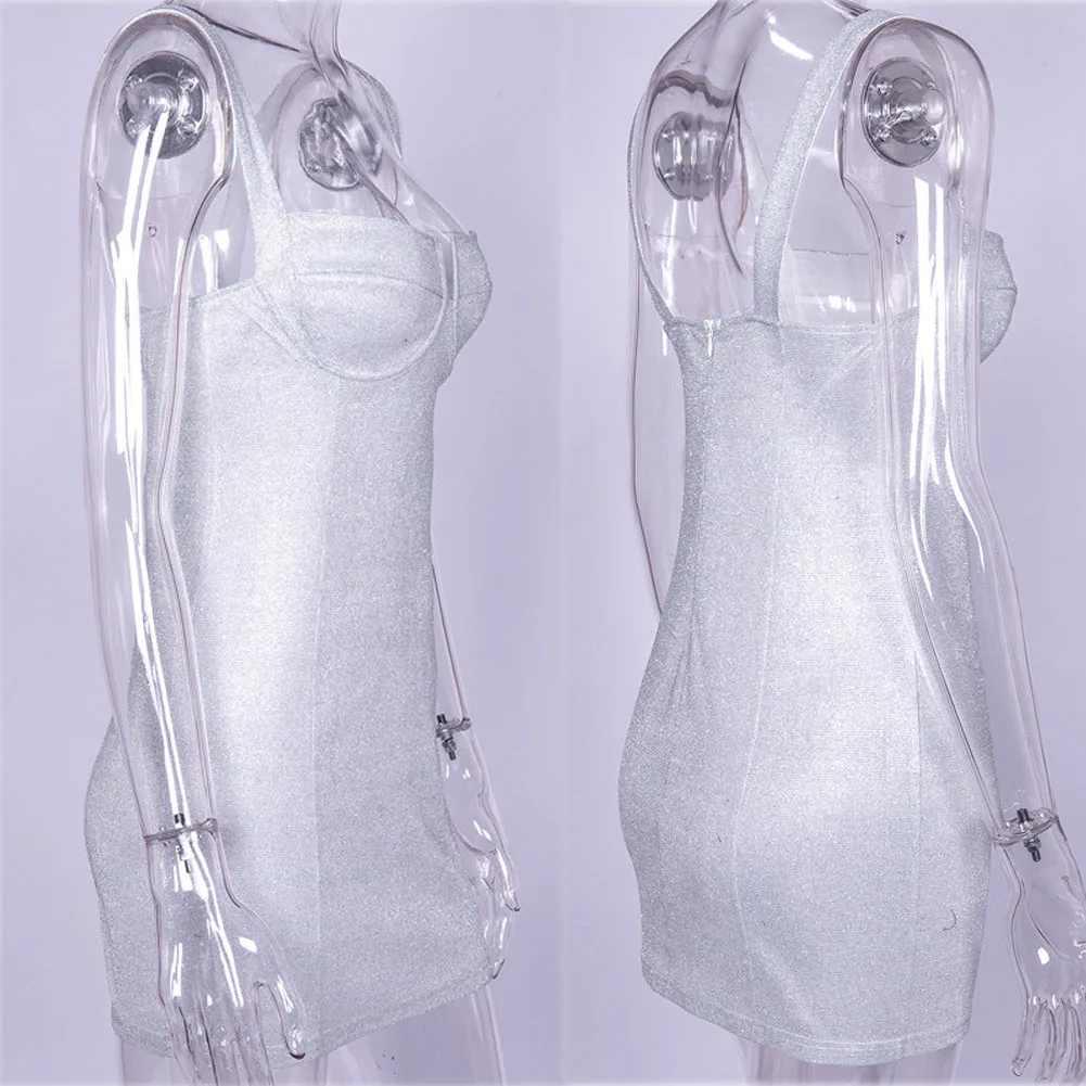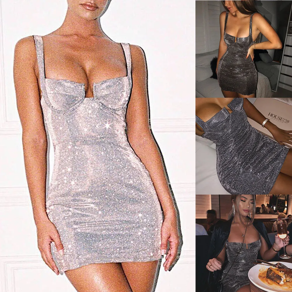 Summer Fashion Sexy Female Women Sleeveless Strappy Bodycon Dress Night Club Mini Short Sequined Bling Dress