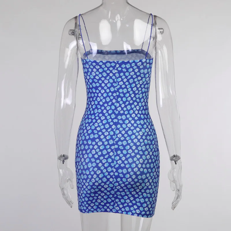 Summer Floral Print Bodycon Dress Women 2021 Strap Ruched Backless Orange Sleeveless Mini Party Dresses Beach