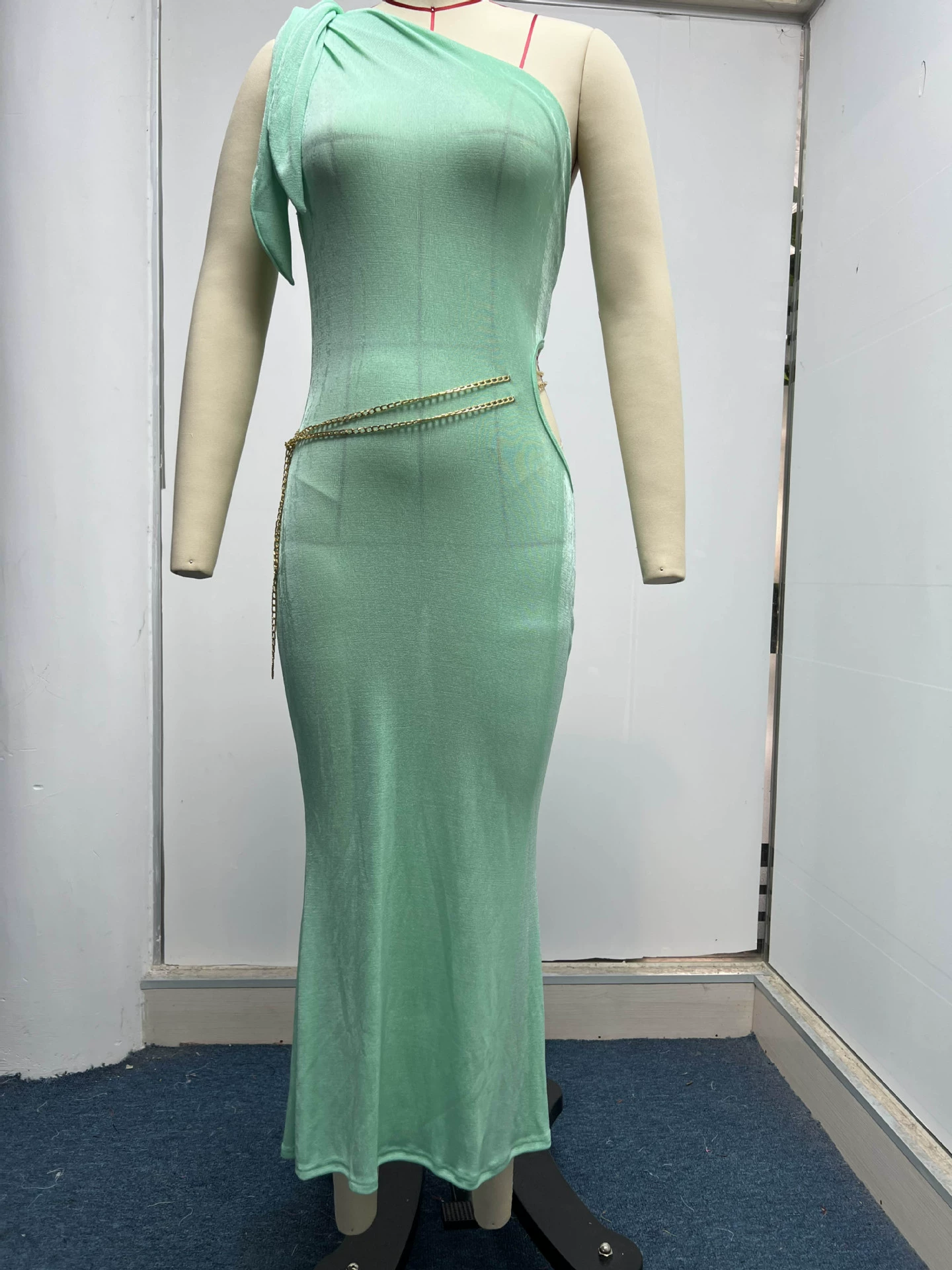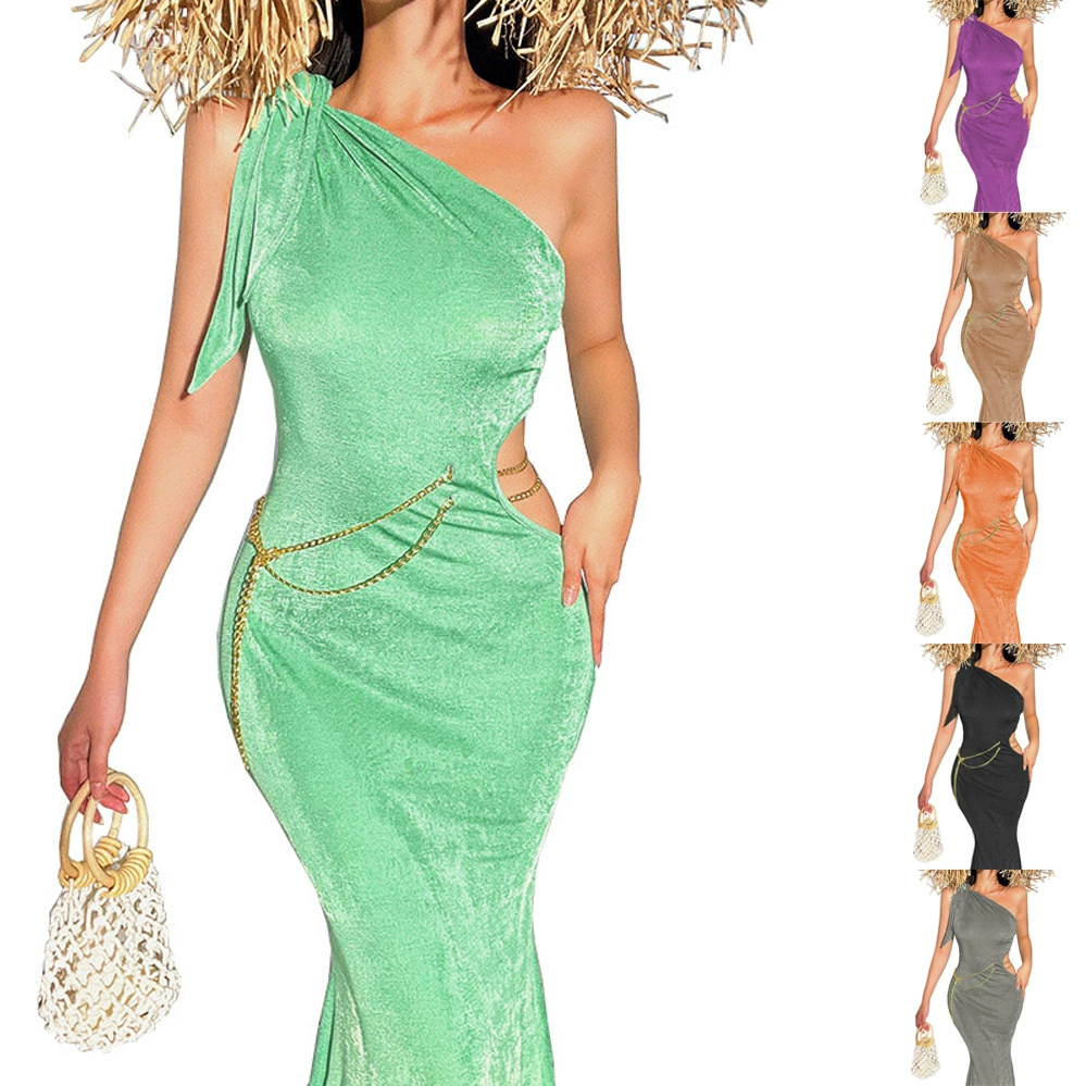 Summer Ladies Robe Dress Sexy Waist Slanted Shoulder Hollow Chain Pants Dress Fashion Street Party Club vestidos de mujer traf