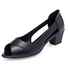 Summer Leather Women Shoes Comfortable Ladies Mid Heel Sandals Hollow Peep Toe Square Heel Sandals Woman Footwear