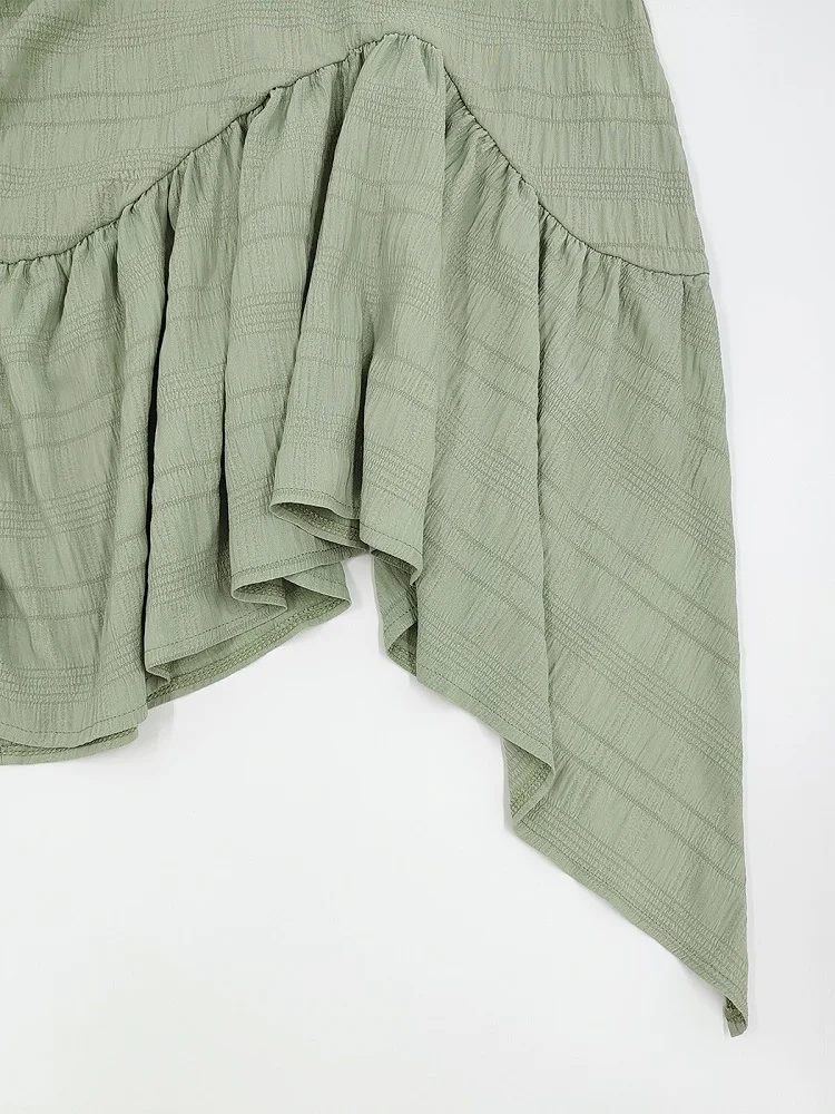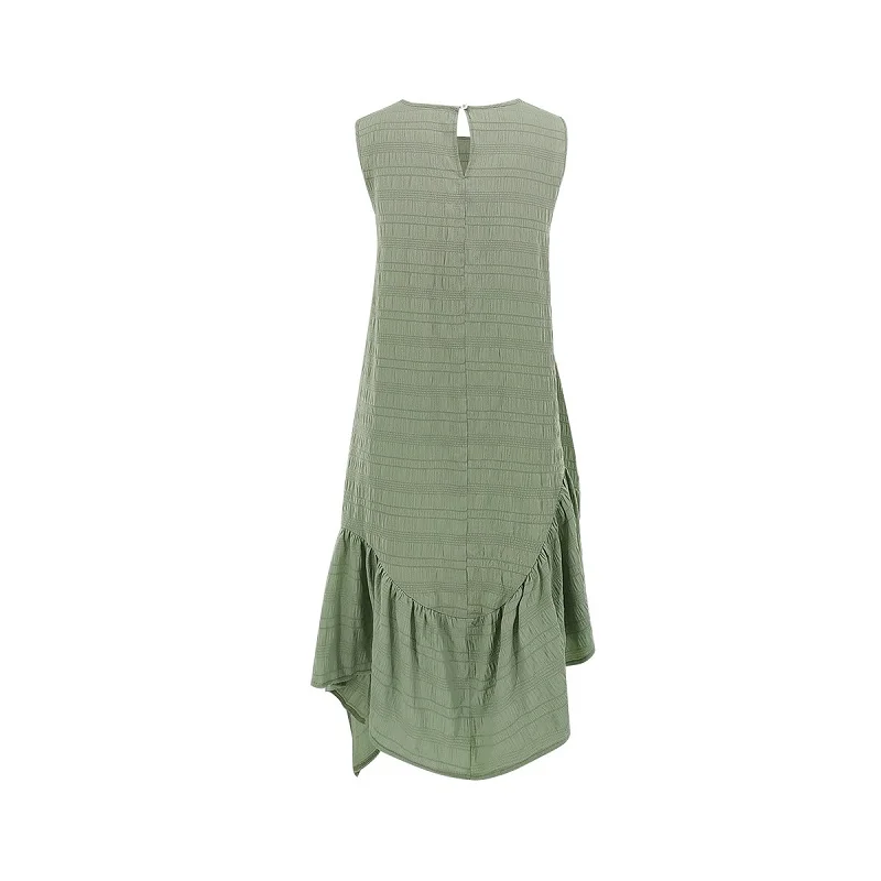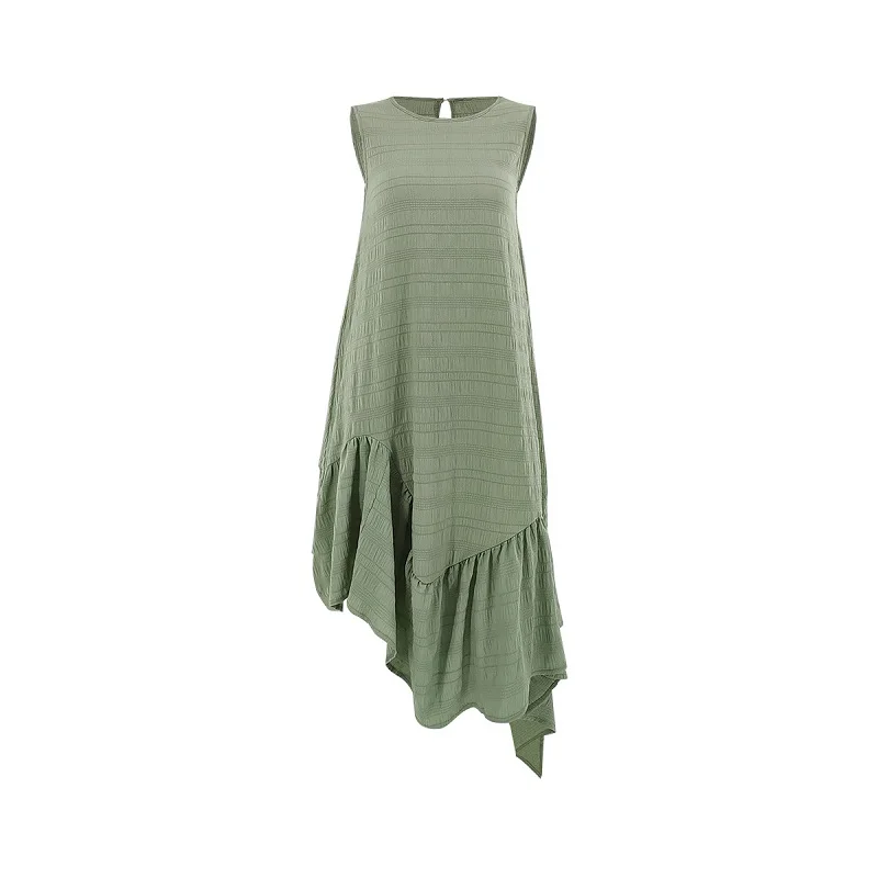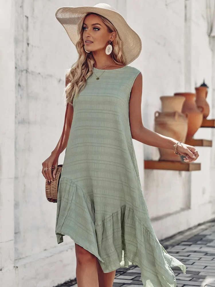 Summer New Women Temperament Good Quality Holiday O-neck Sleeveless Dresses Elegant Ladies Solid Ruffle Irregular Hemline Female