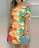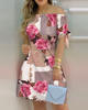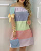 Summer Off shoulder Dress Women Fashion Casual Stripped Lace up Short Sleeves A Line Mini Dress Women