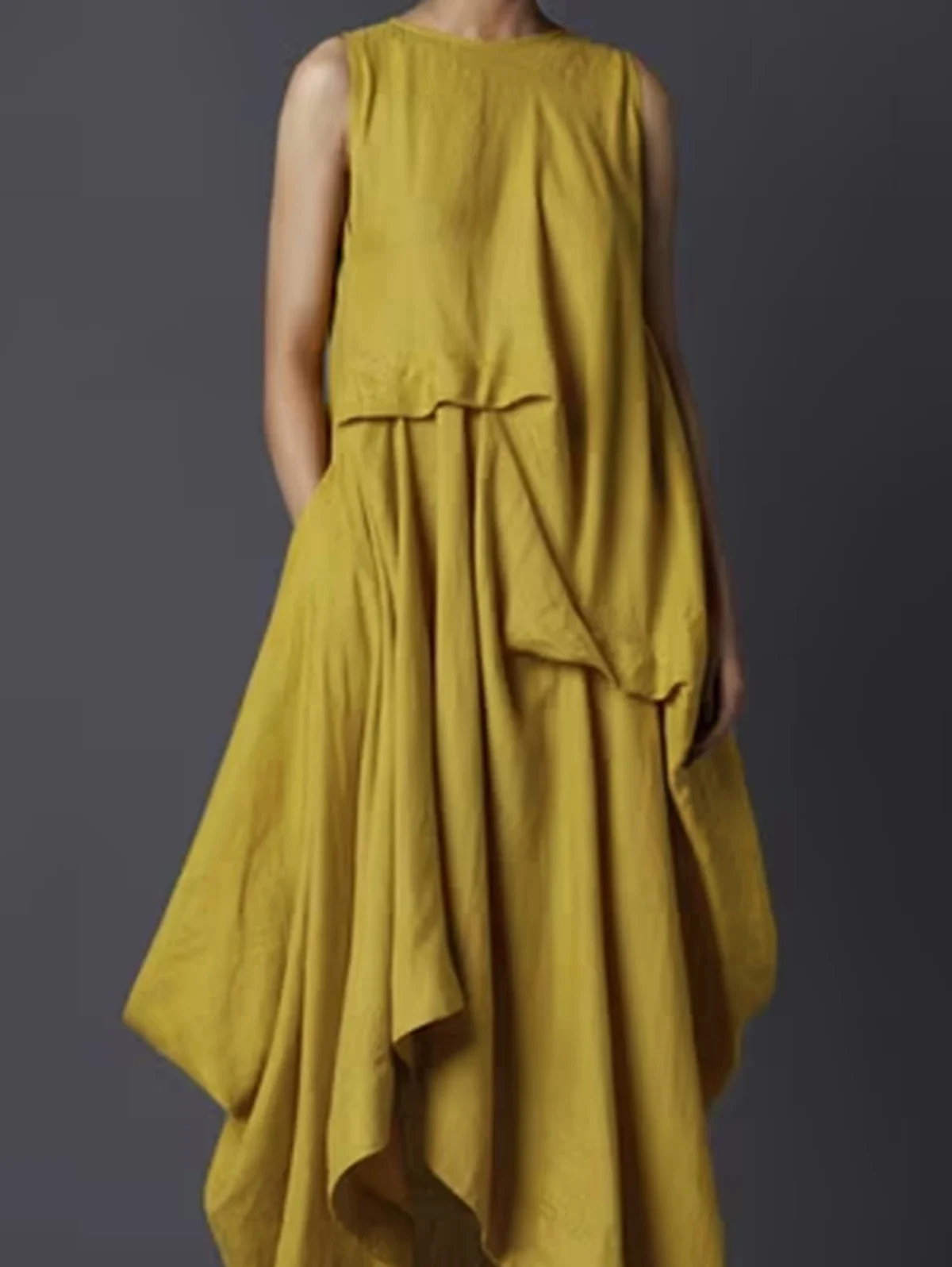 Summer Pockets Dress Women Crew Neck With Back Button Irregular Maxi Dresses Female Elegant Fashion Casual Loose Tank Dress