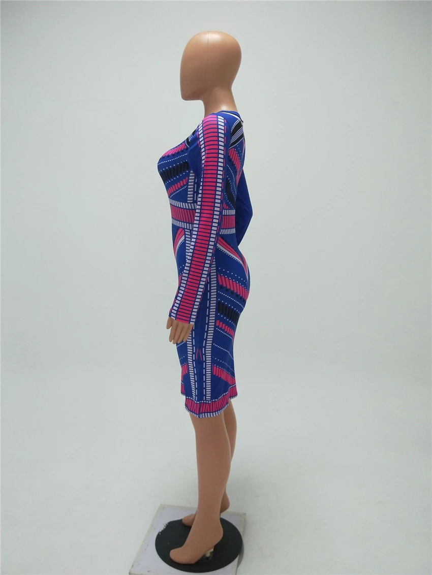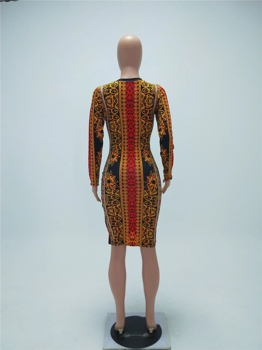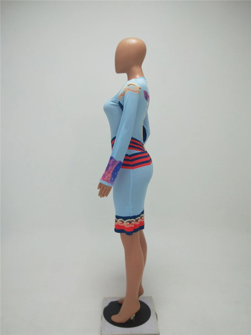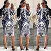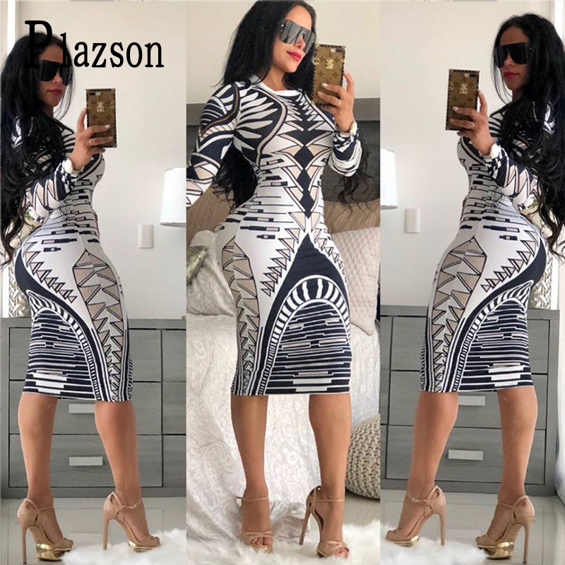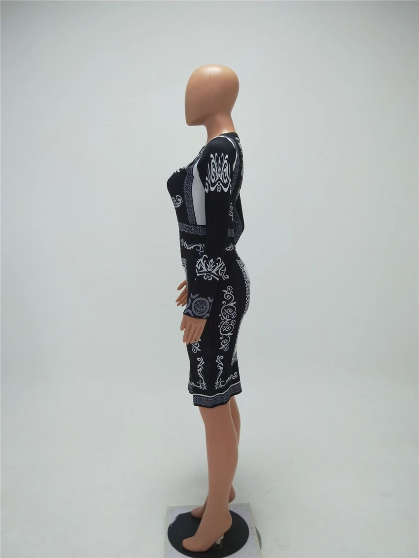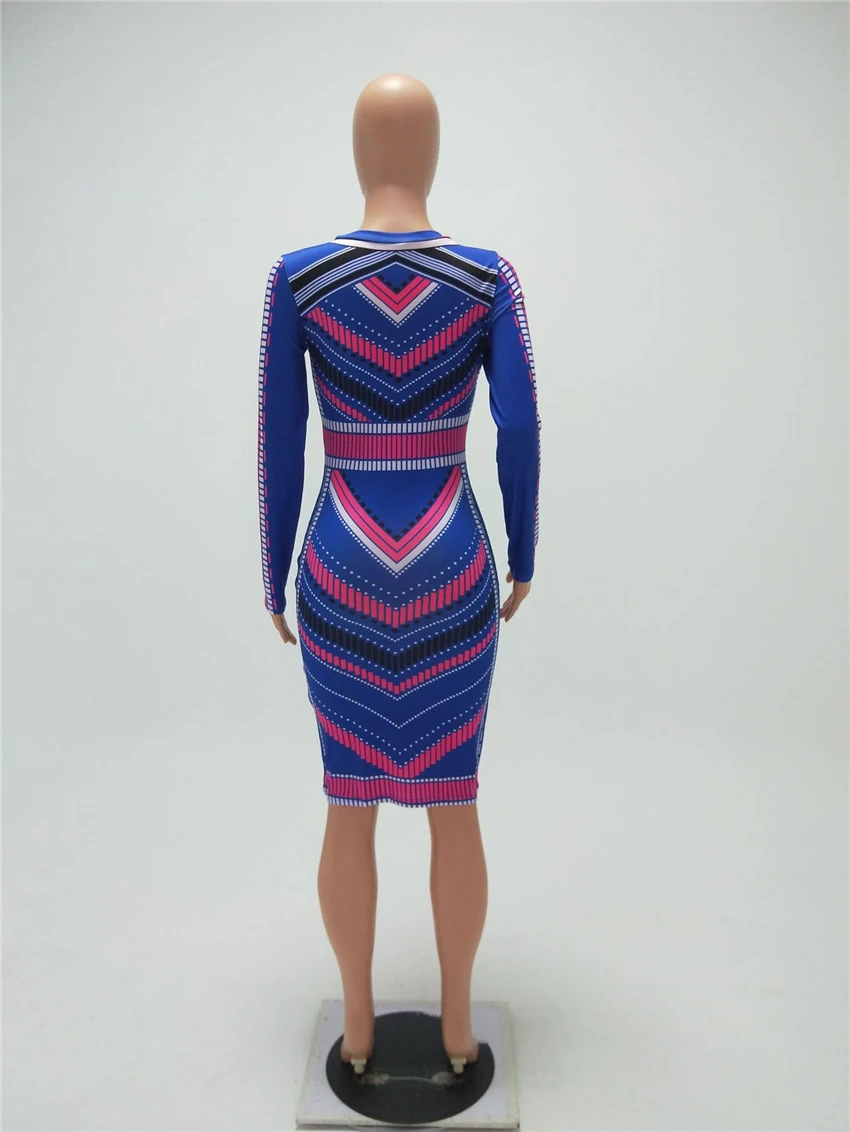Summer Print Novelty Bandage Bodycon Dress Women Long Sleeve Knee-length Casual Dress Elegant Slim Midi Party Dresses vestidos