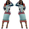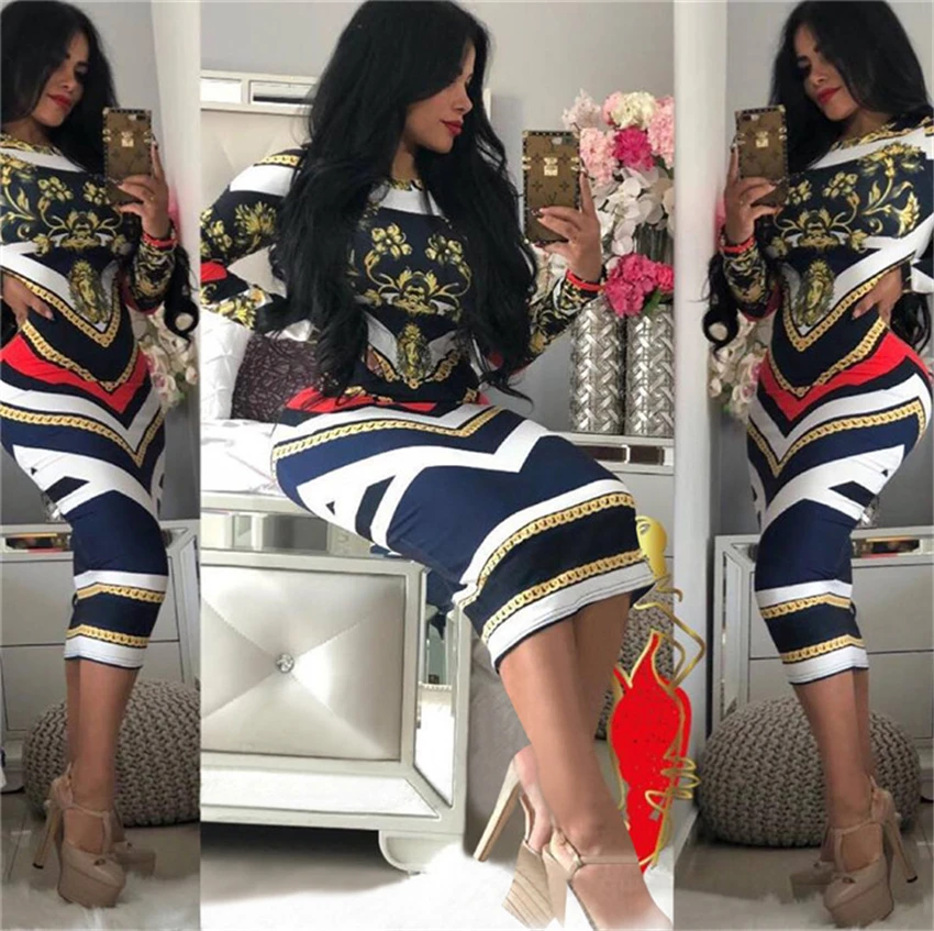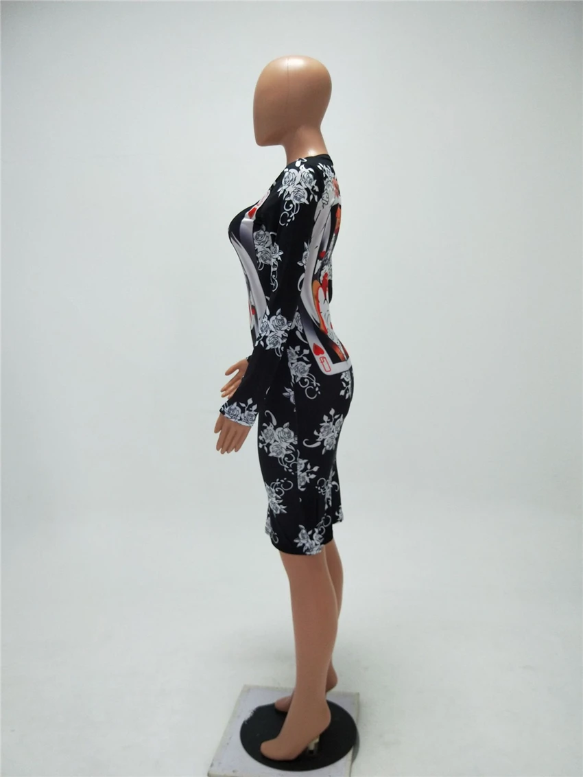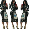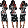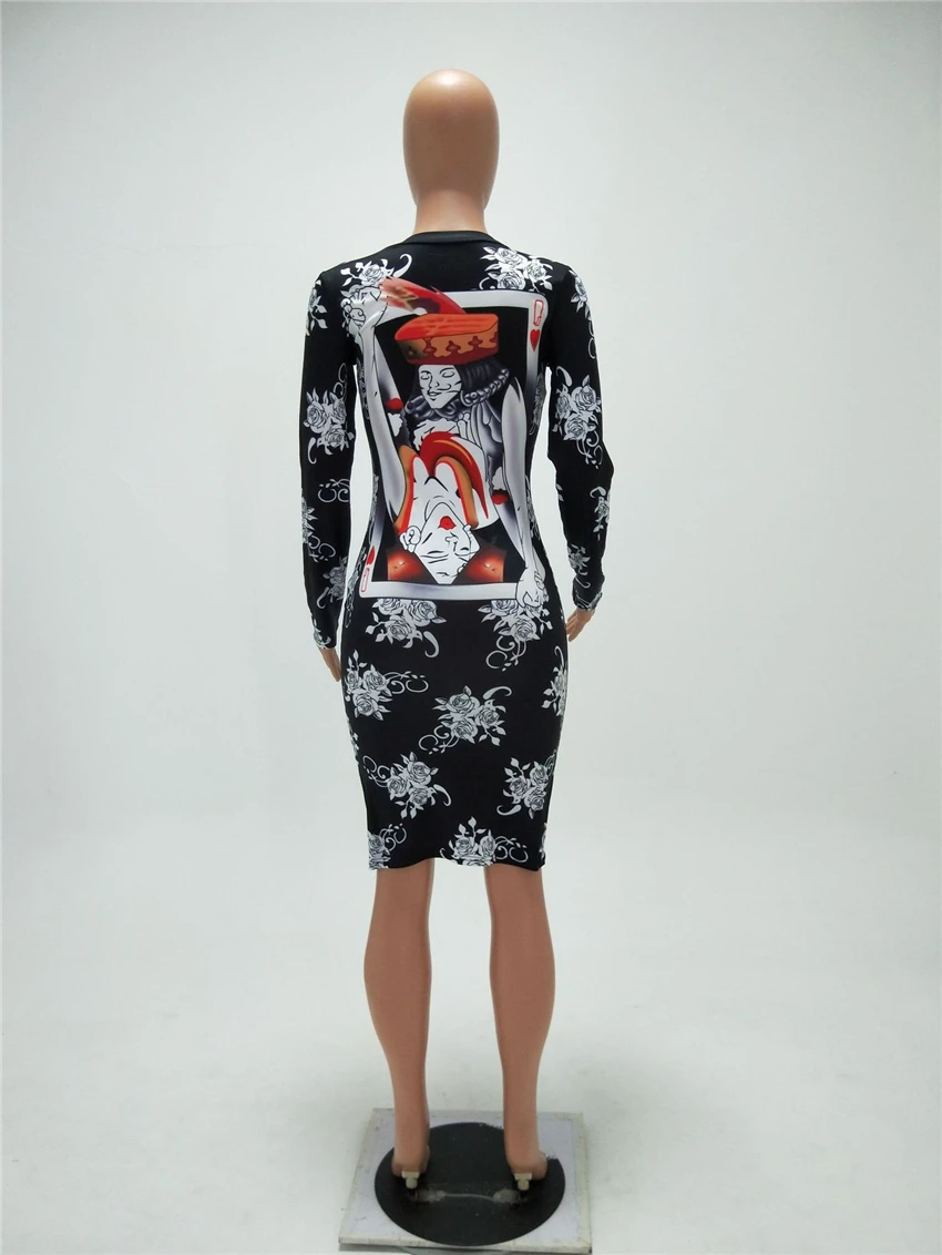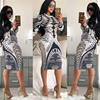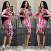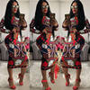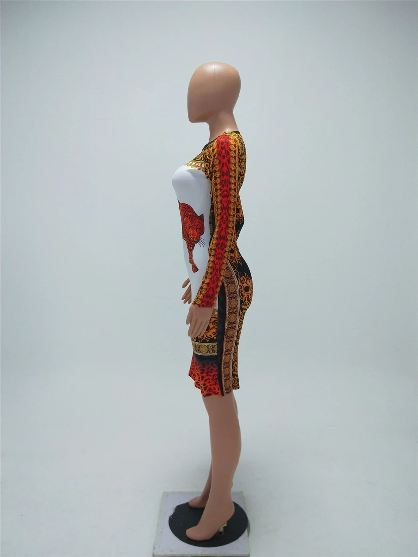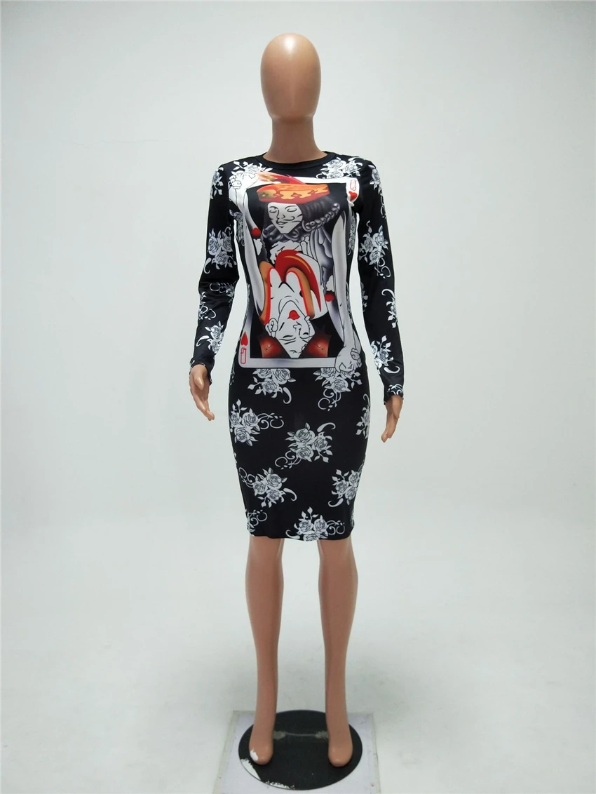 Summer Print Novelty Bandage Bodycon Dress Women Long Sleeve Knee-length Casual Dress Elegant Slim Midi Party Dresses vestidos
