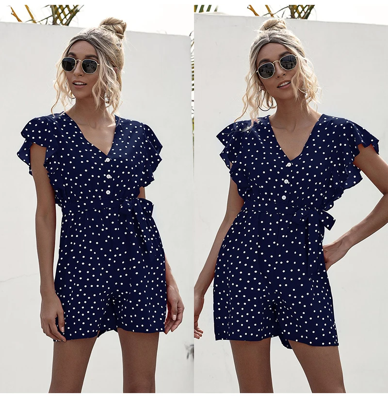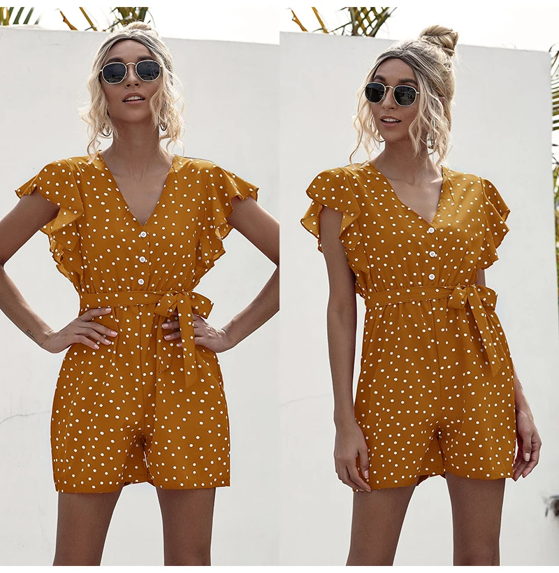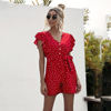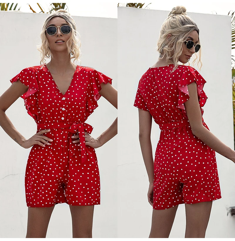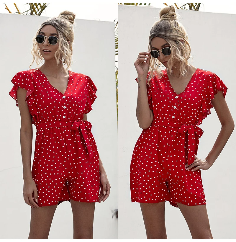 Summer Rompers Womens Jumpsuit Casual Ruffle Short Sleeve Clothing One Piece Beach Outfits Belt 2020 Red Clothes Women Playsuit