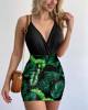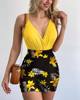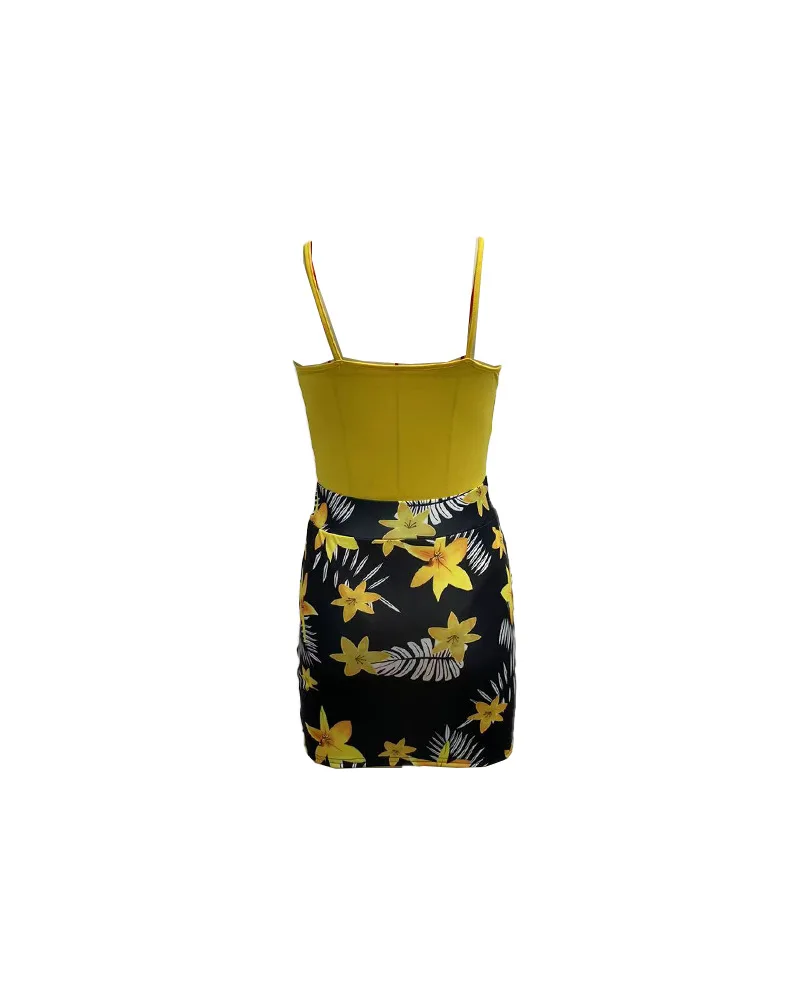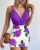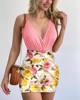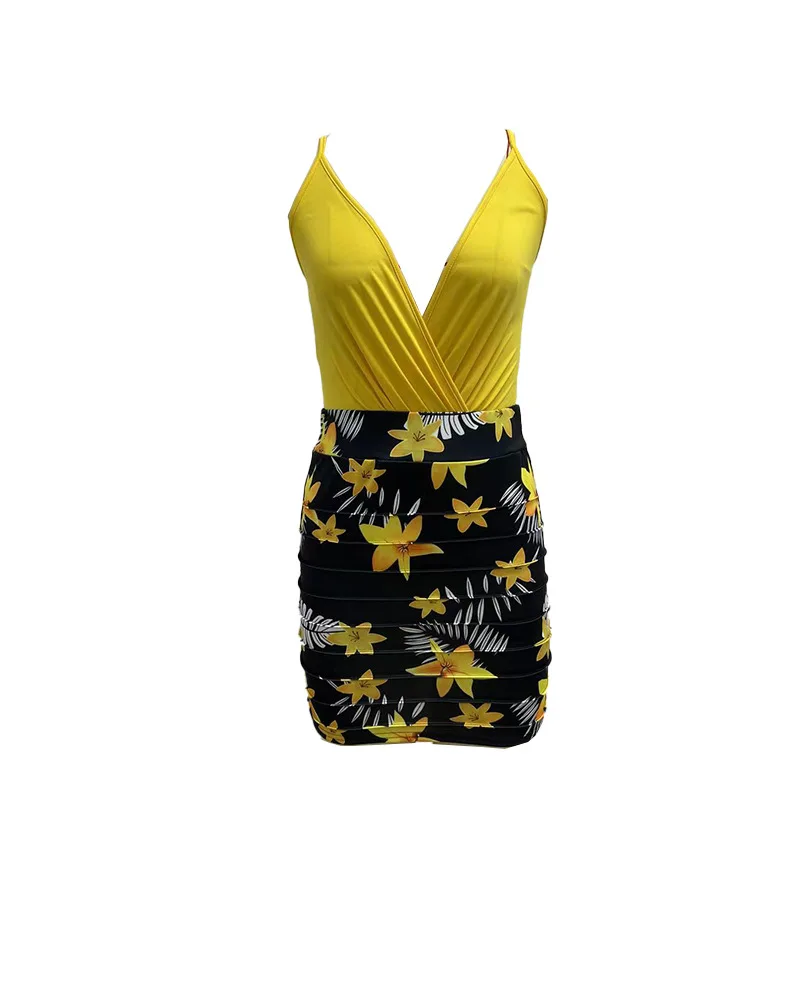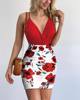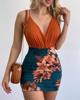 Summer Sexy Two Piece Set Wome Fashion V-neck Sleeveless Suspender Top Floral Print Tight Skirt Suit Two Piece Set Women