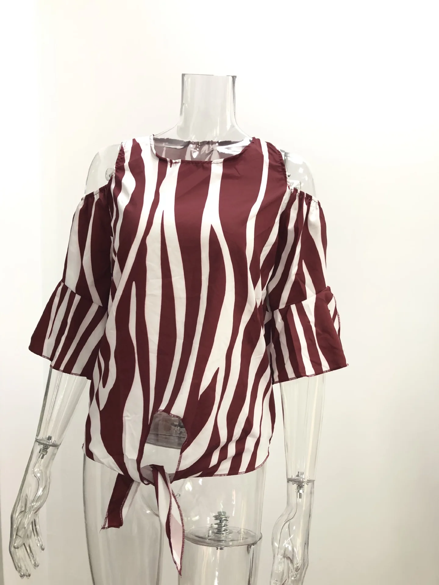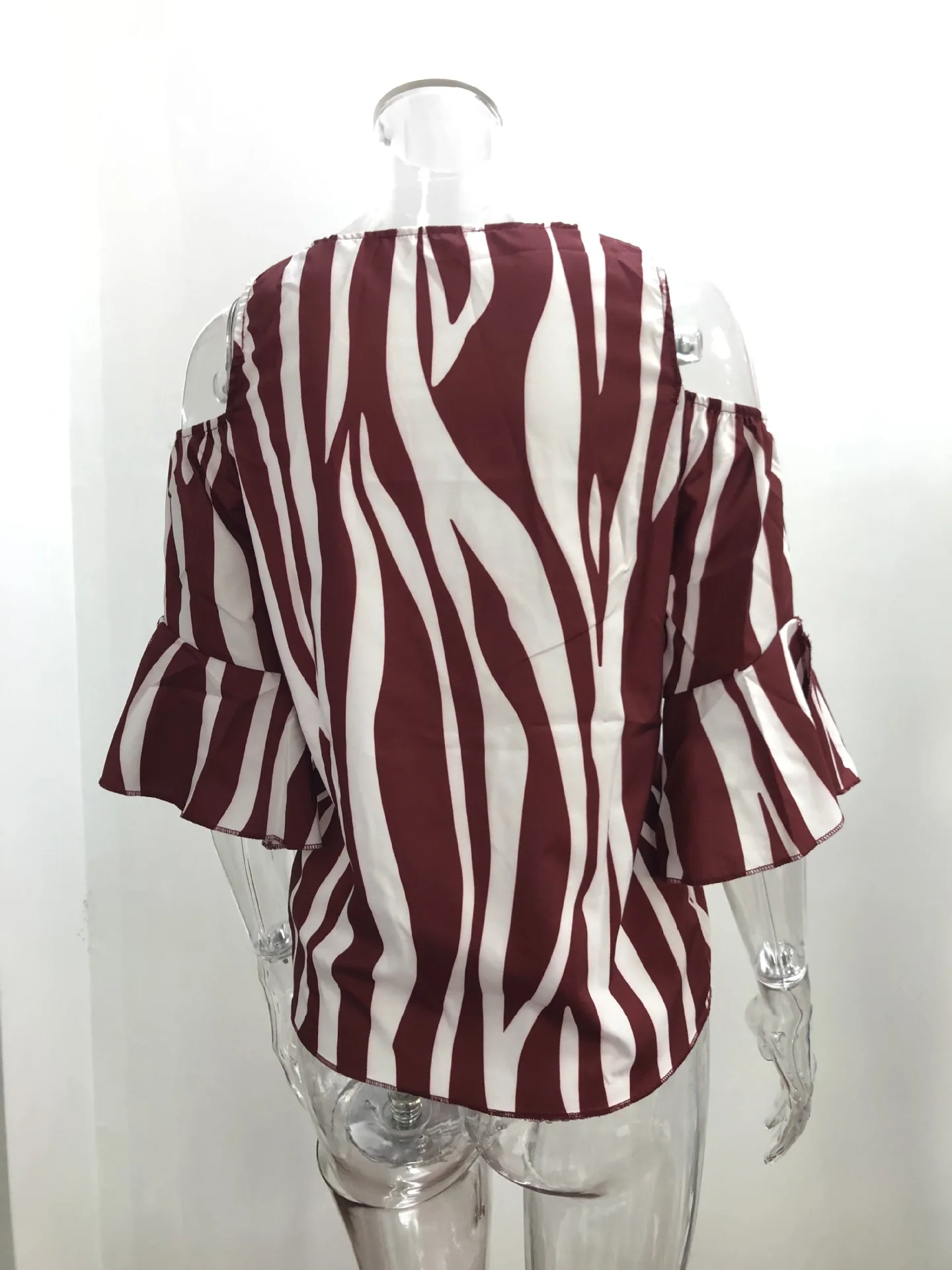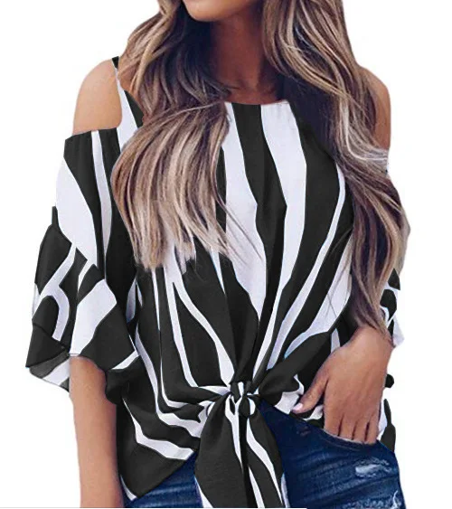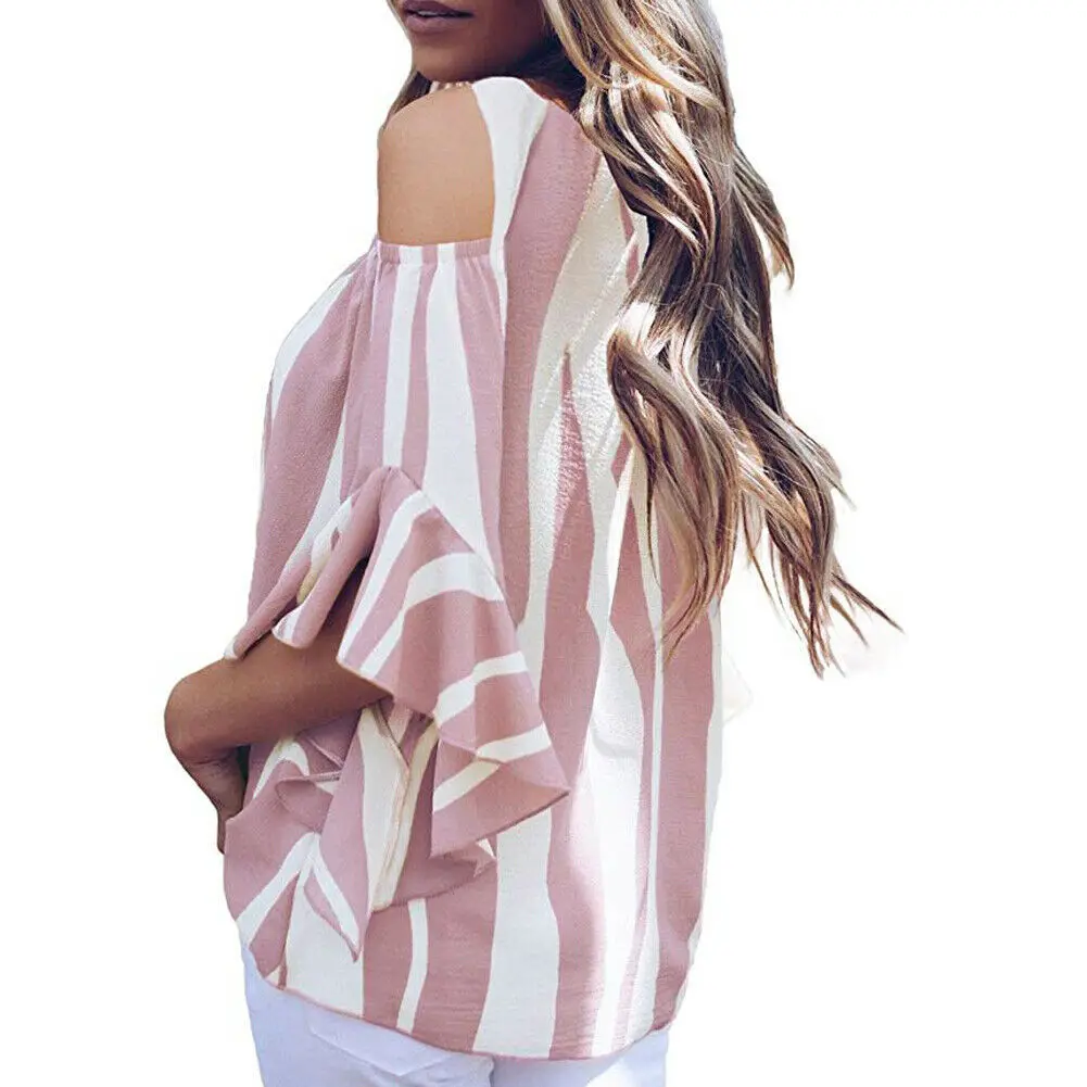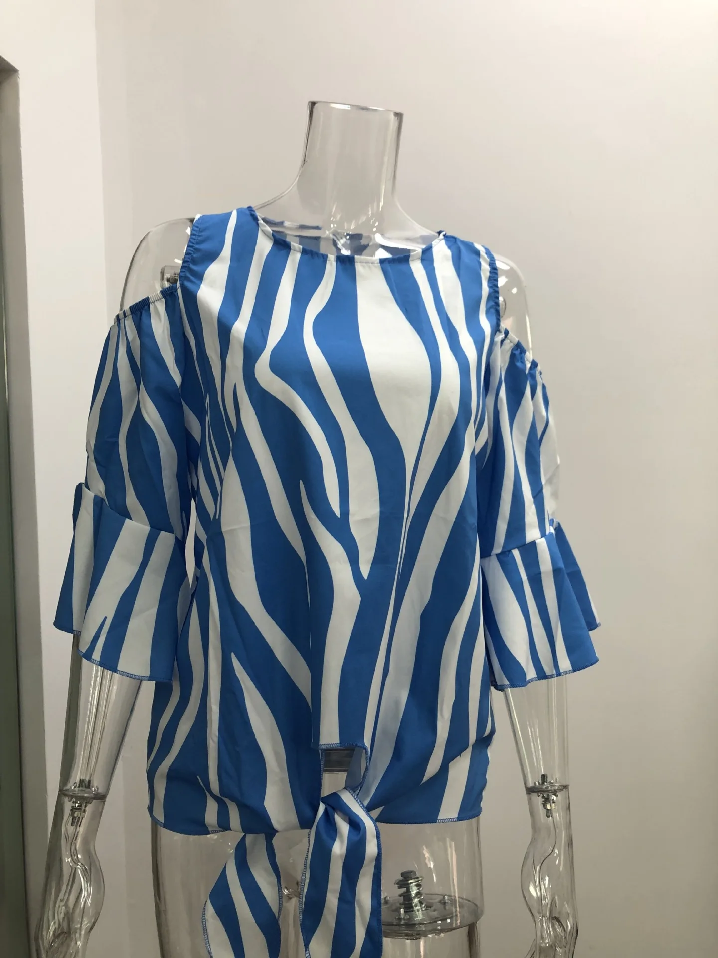 Summer Shirts 2022 Woman Striped Pirnted O-Neck Half Sleeve Blouse Female Fashion Loose Streetwear Sexy Ladies Blue Tops Femme