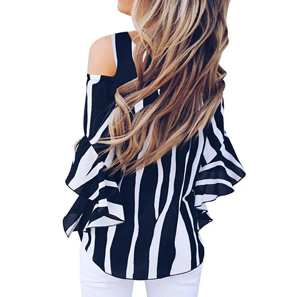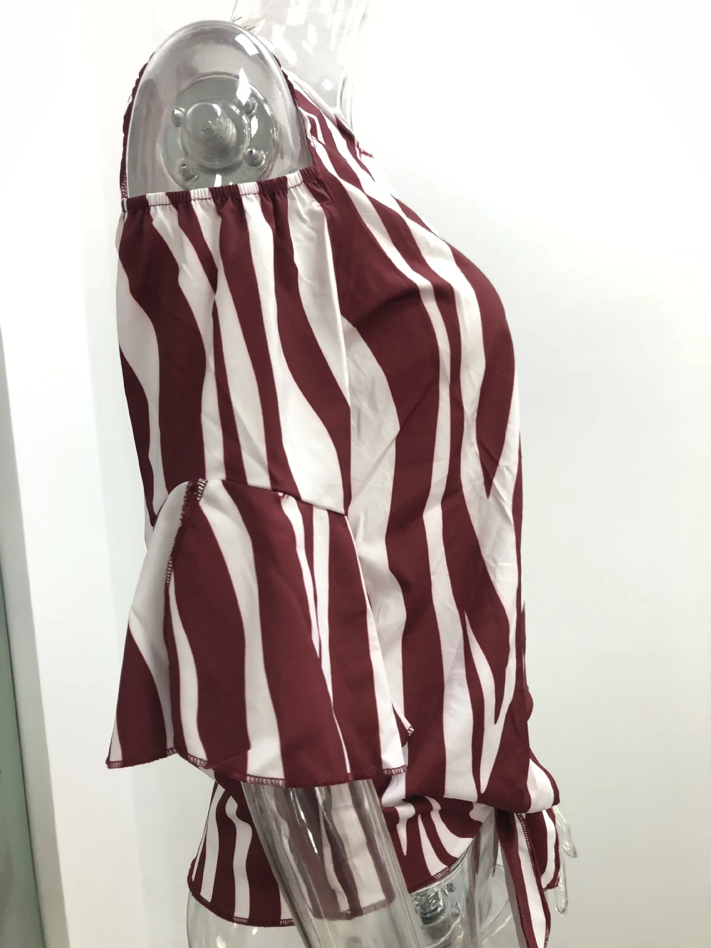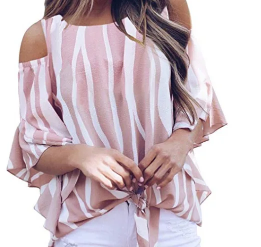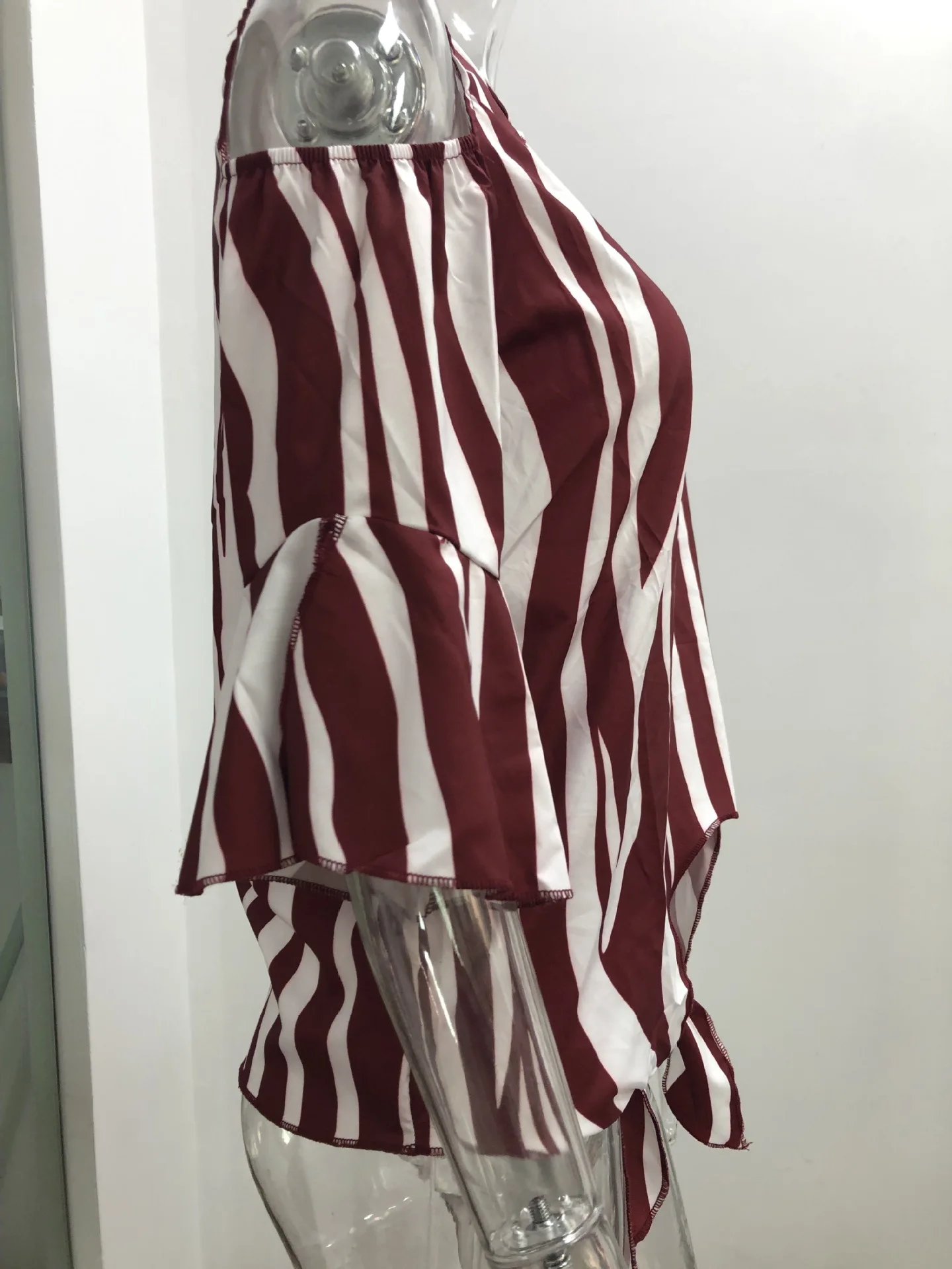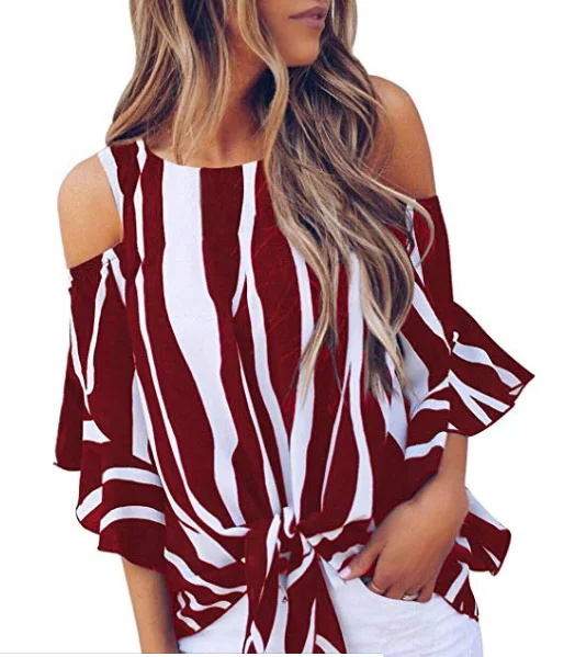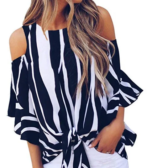 Summer Shirts 2022 Woman Striped Pirnted O-Neck Half Sleeve Blouse Female Fashion Loose Streetwear Sexy Ladies Blue Tops Femme