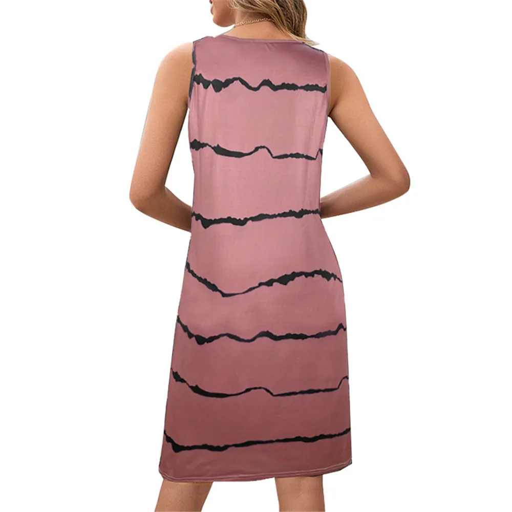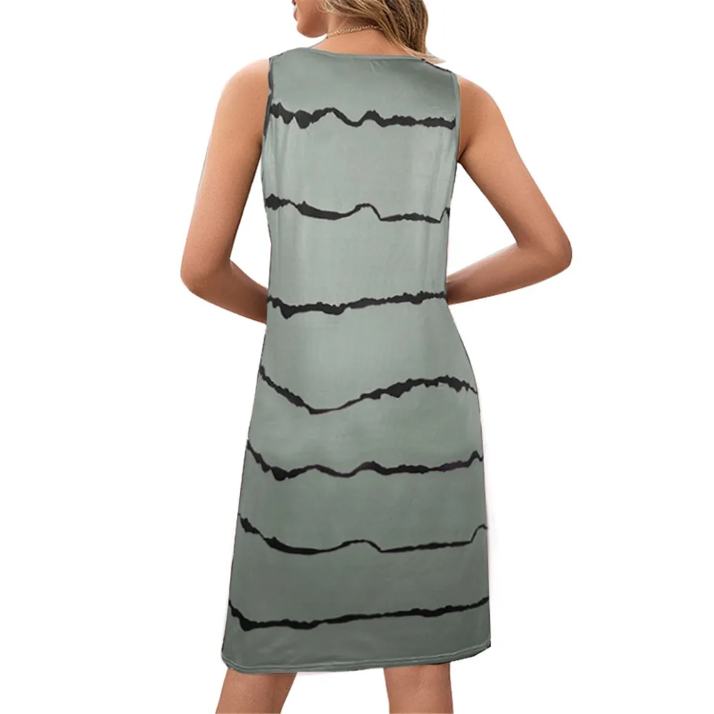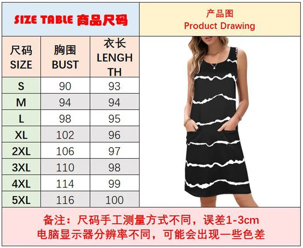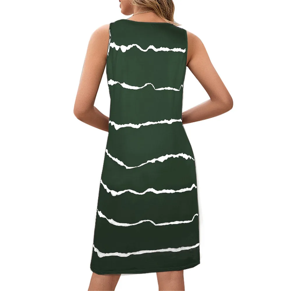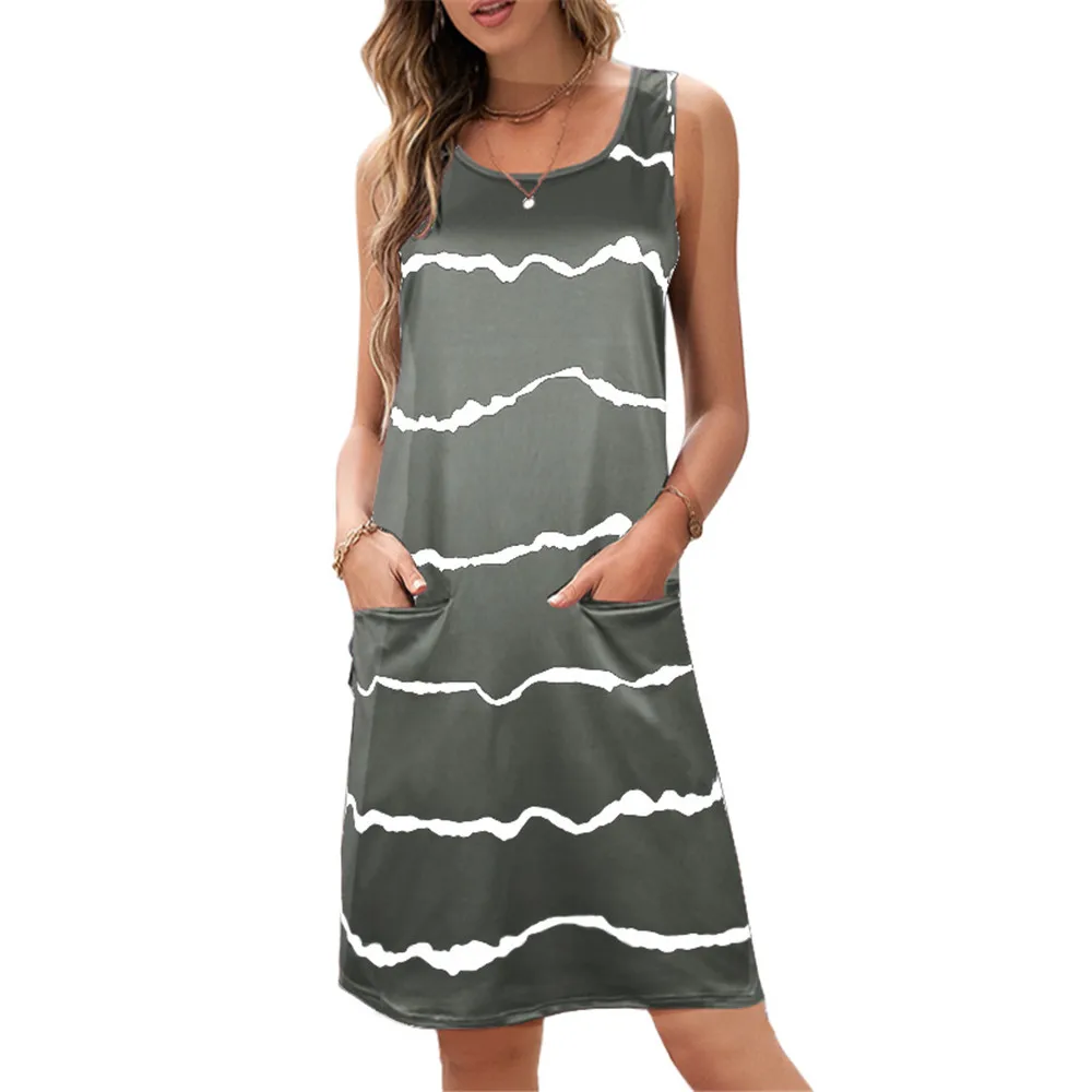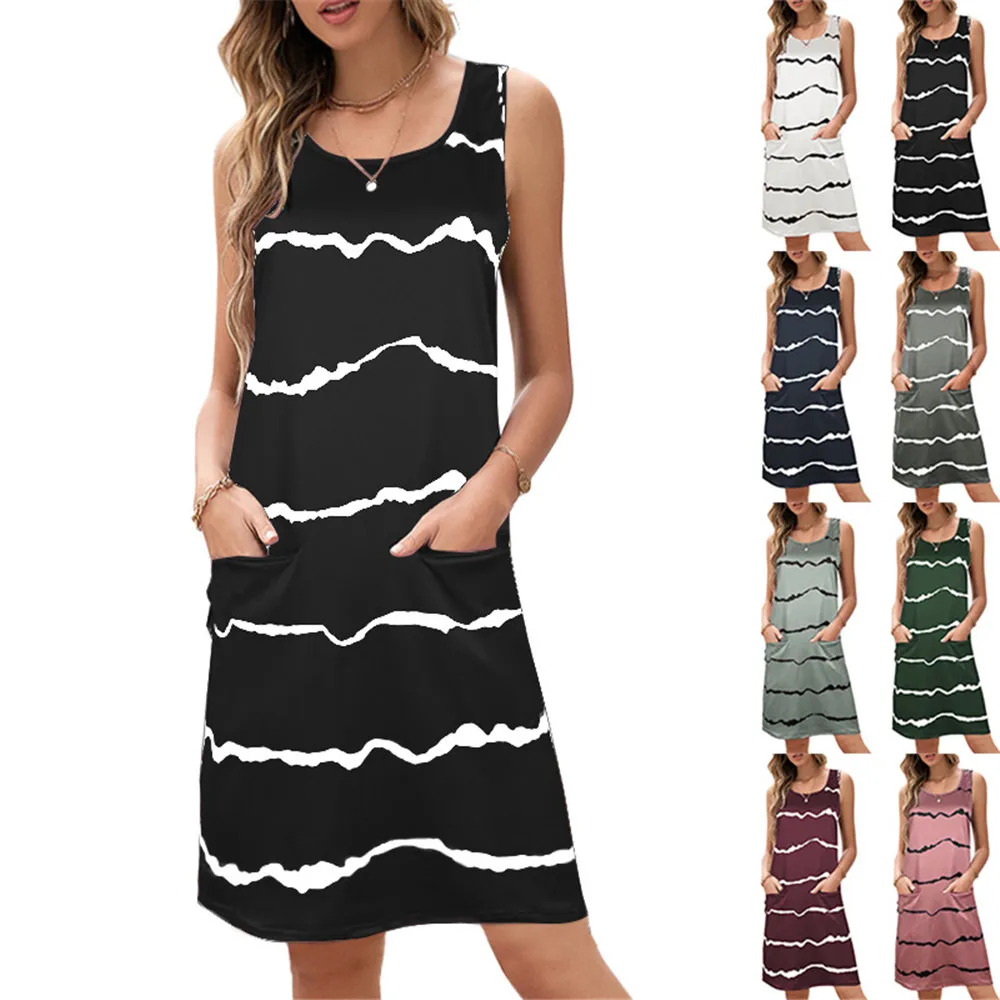 Summer Short dress 2022vestidos elegantes para mujer Casual O-neck Printed Striped Ladies dress Pocket Vest Sleeveless Skirt