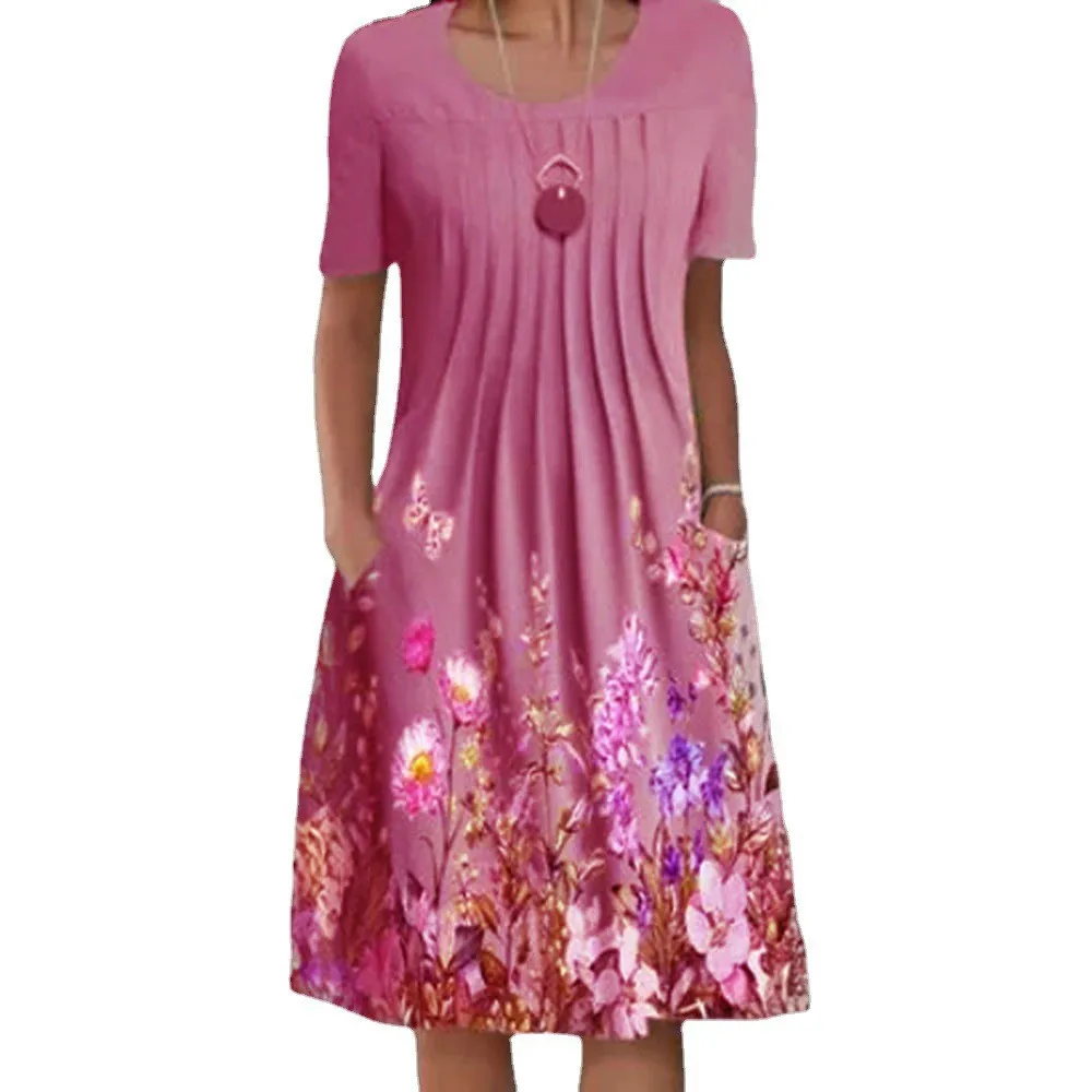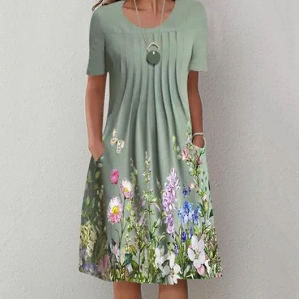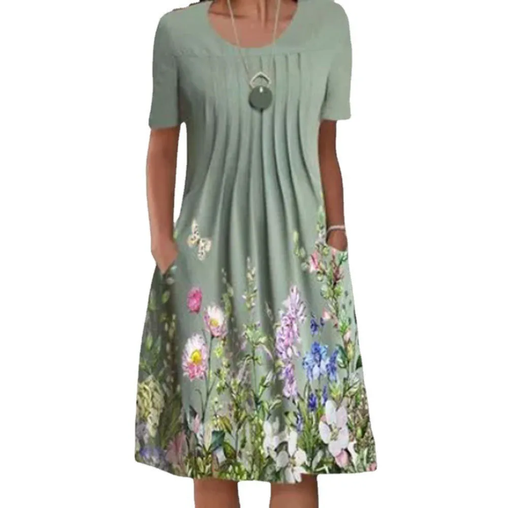 Summer Short Sleeve Floral Printing Vintage Dresses For Women 2022 Female Clothing Loose Beach Elegant Large Swing Midi Dress