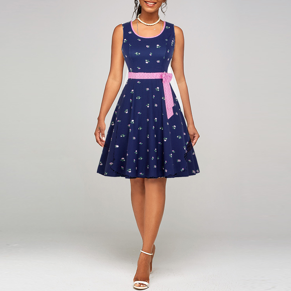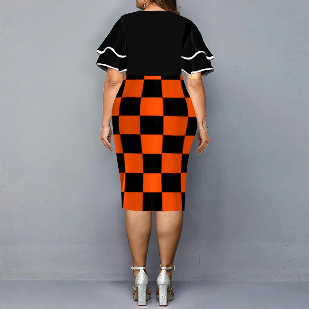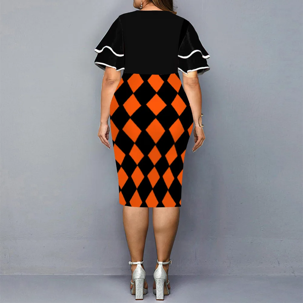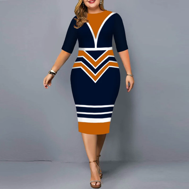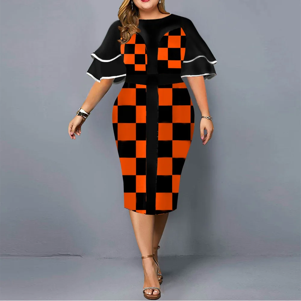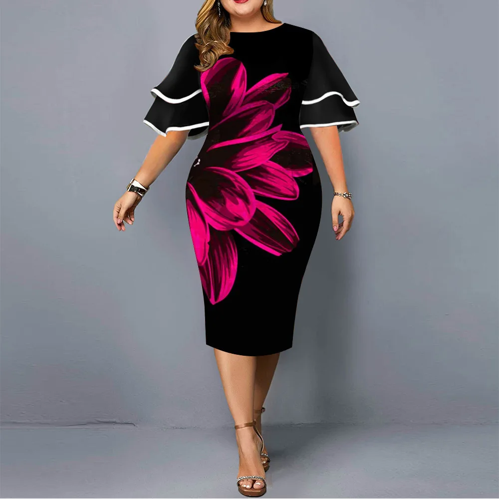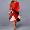 Summer Short Sleeve Women Dress Fashion O-neck Elegant Ladies Maxi Dress Vintage Patchwork Printed Female Slim Plus Size Dress