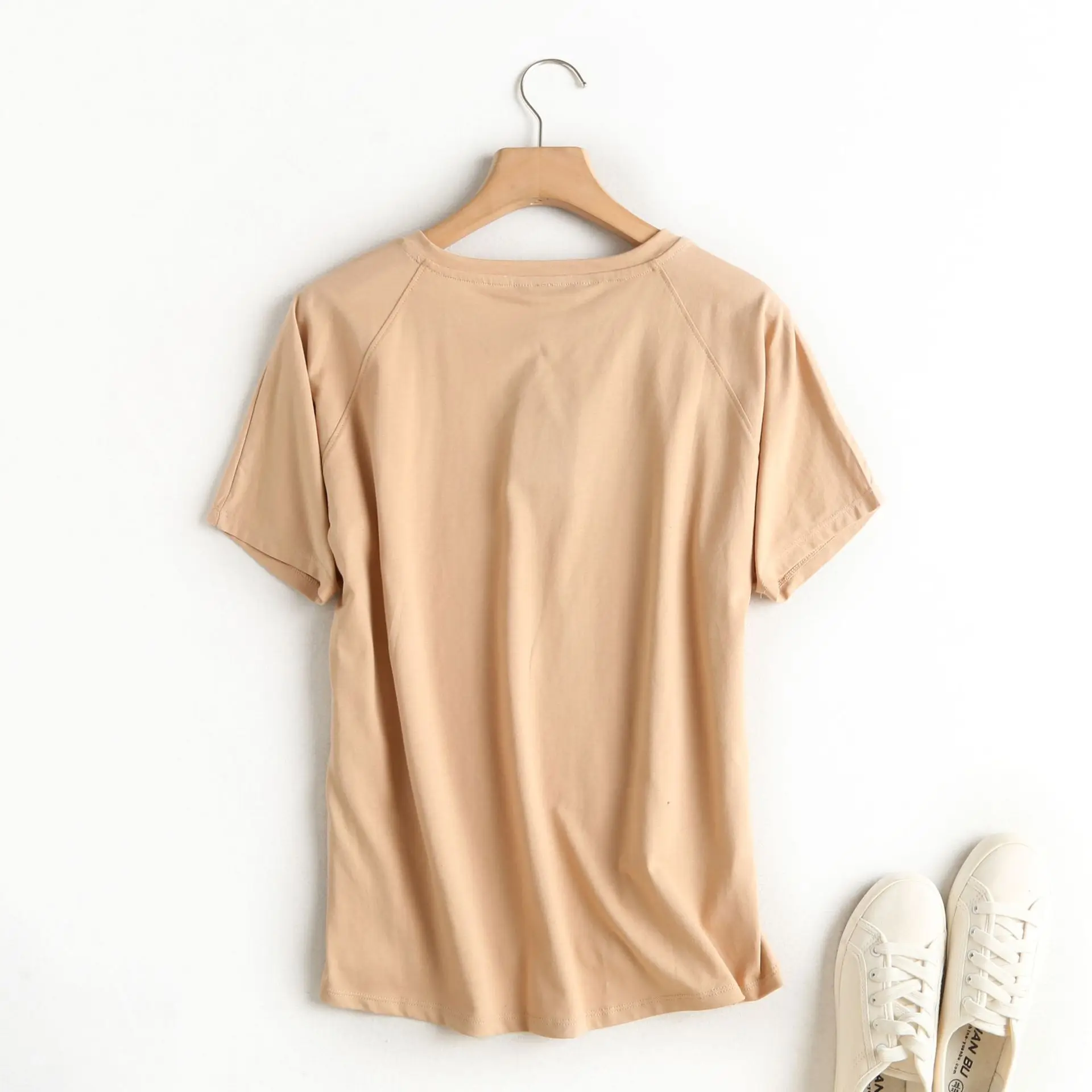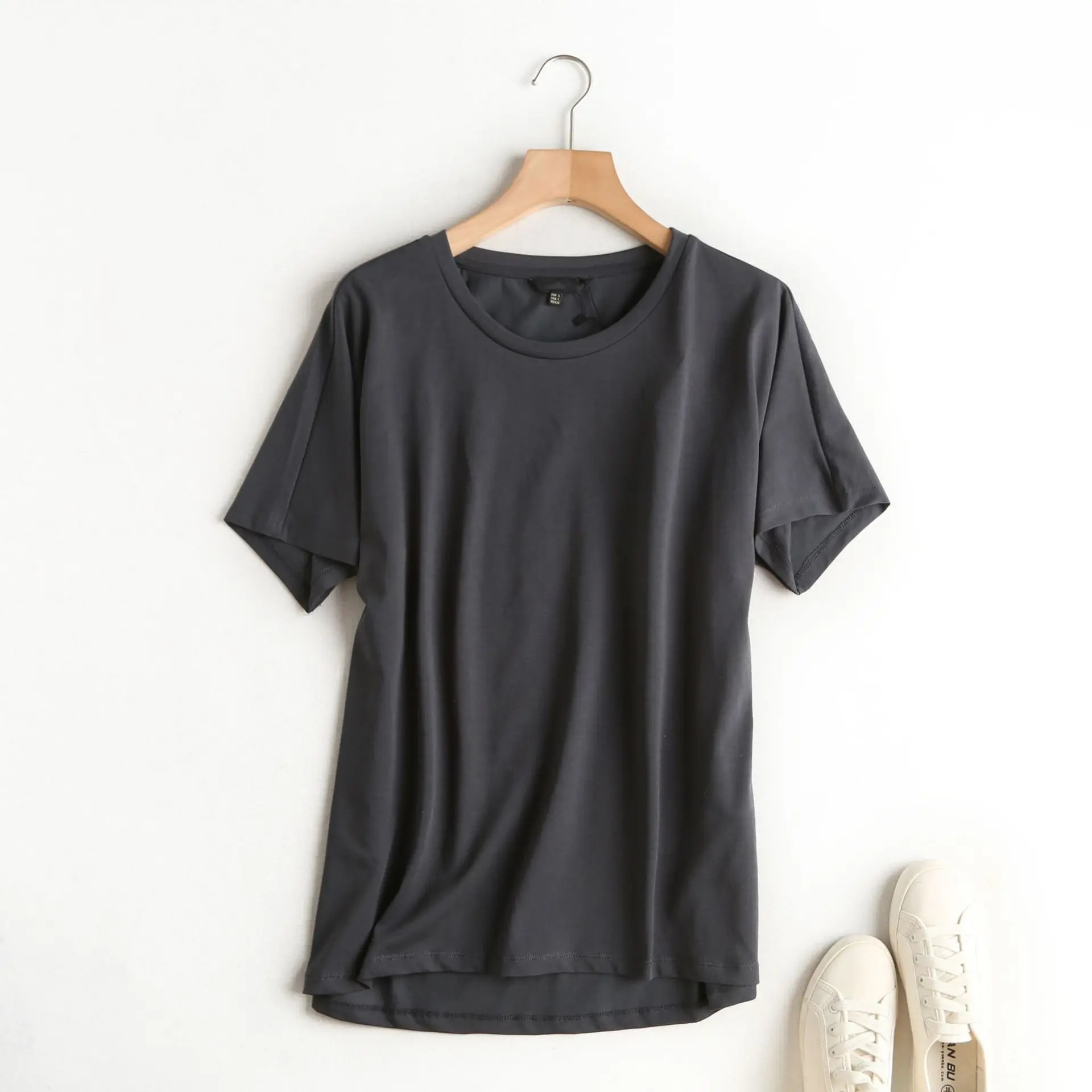 Summer solid color tops ladies shirts O-neck T-shirts women's comfortable short-sleeved cotton shirts