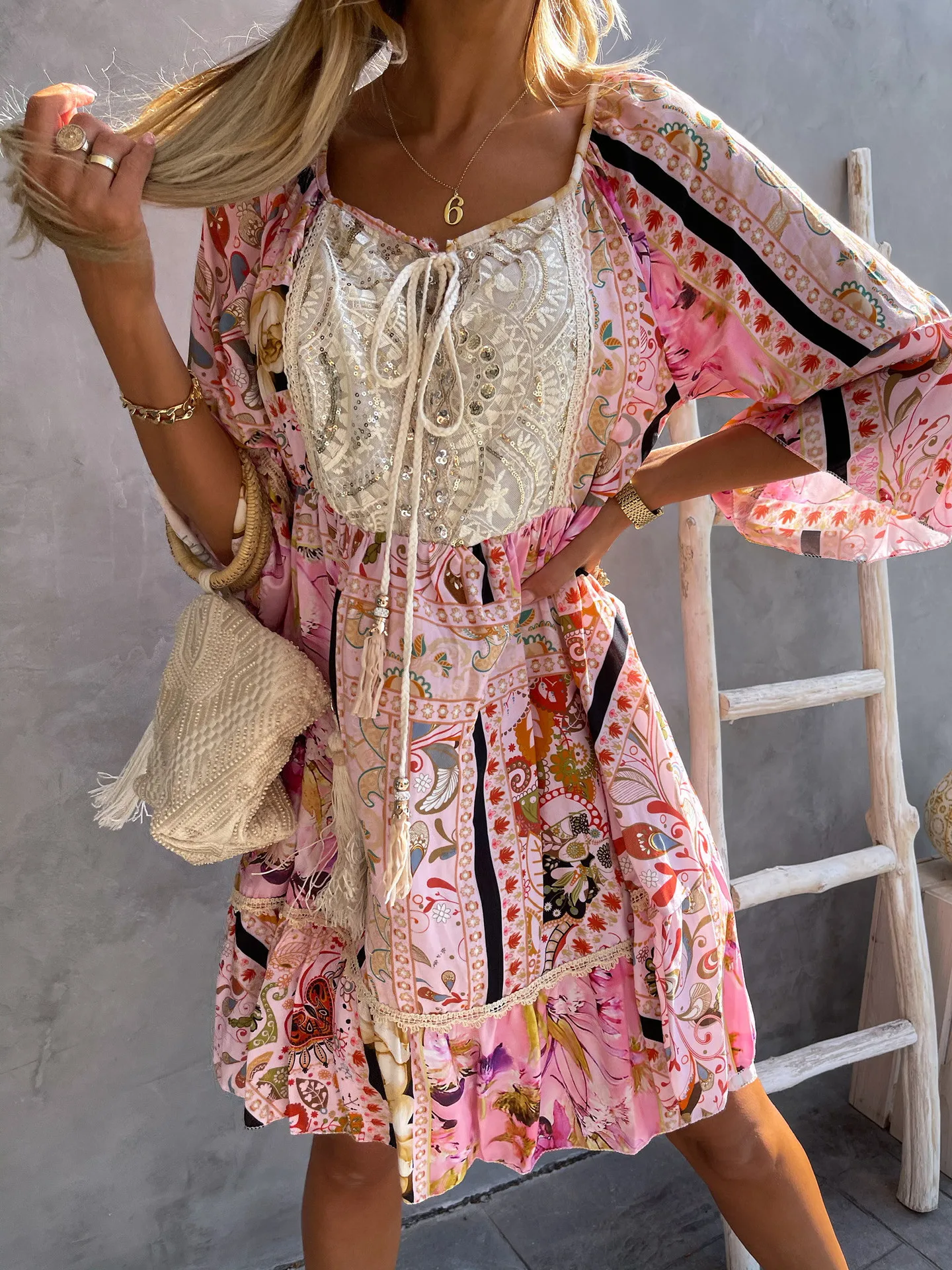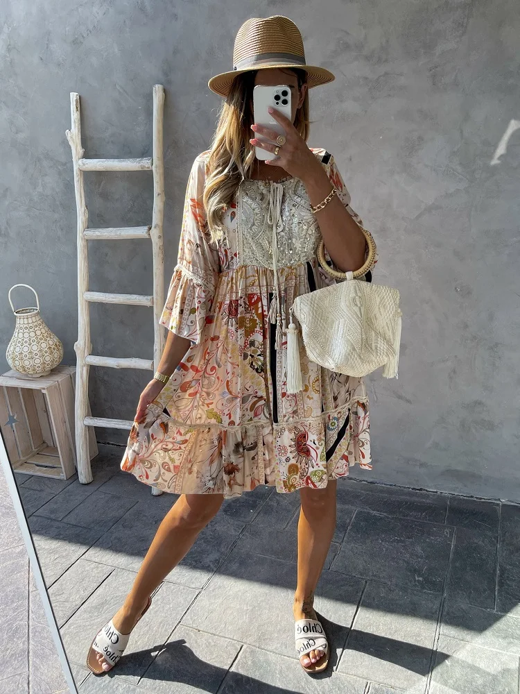 Summer Women Boho Dress Casual Shirt Dress Fashion Streetwear 2021 Elegant Ladies Clothing Vintage Print Lace Dresses Vestidos