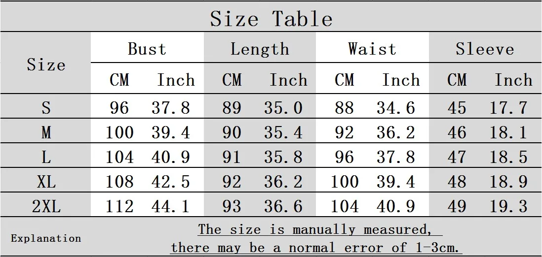 SizeBustWaistLengthSleeve Length