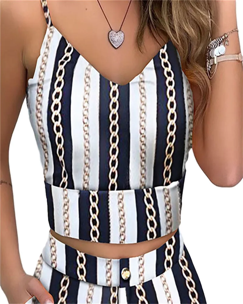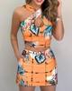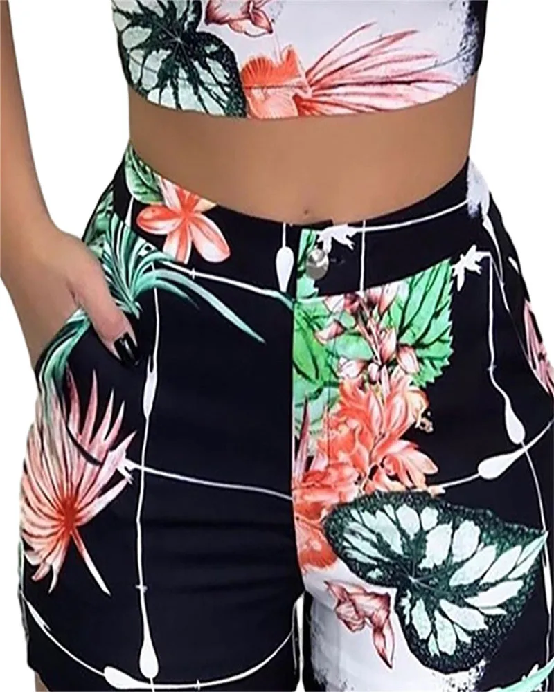 Summer Women Fashion 2-piece Outfit Set Sleeveless Print Top and Shorts Set for Ladies Women Party wear