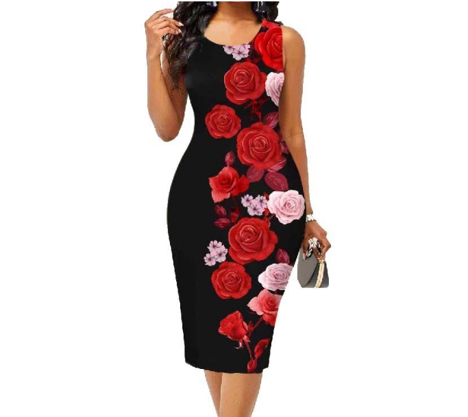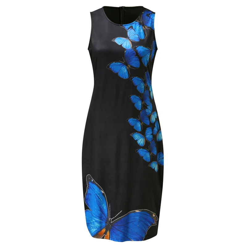 Summer Women Floral Printing Vintage Sleeveless Dress Female Clothing Elegant Vacation Robe High Waist Bodycon Casual Dresses