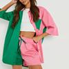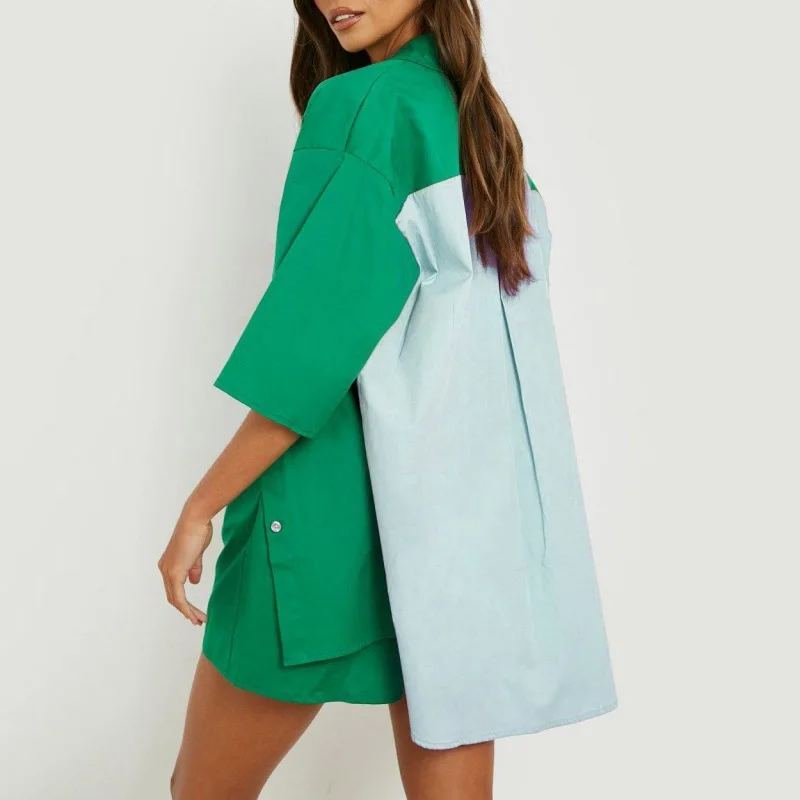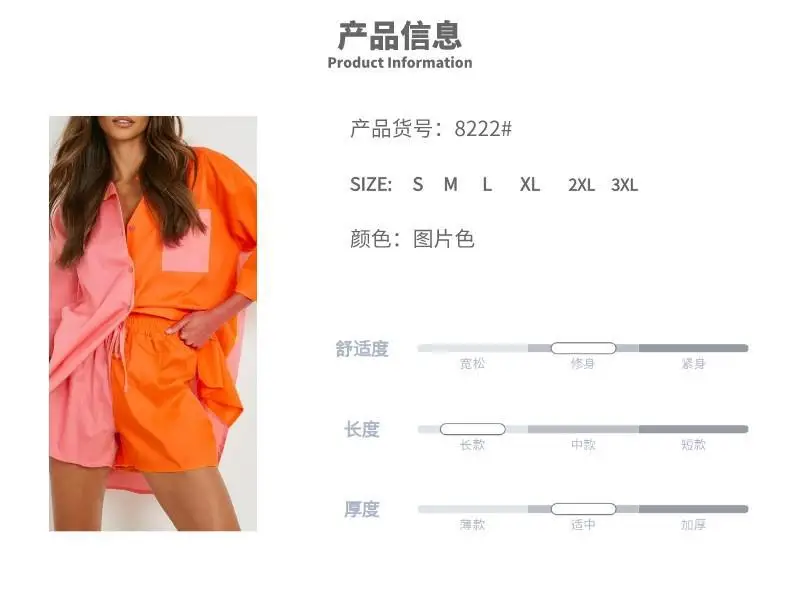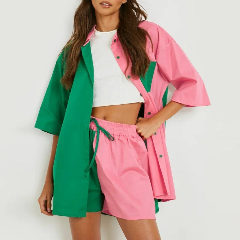Summer Women Loose Contrast Color Stitching Matching Three-quarter Sleeve Shirt Casual Shorts Two-piece Suit Outfits For Women