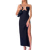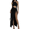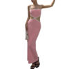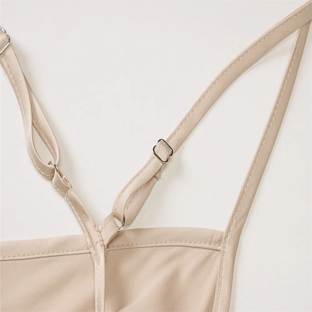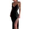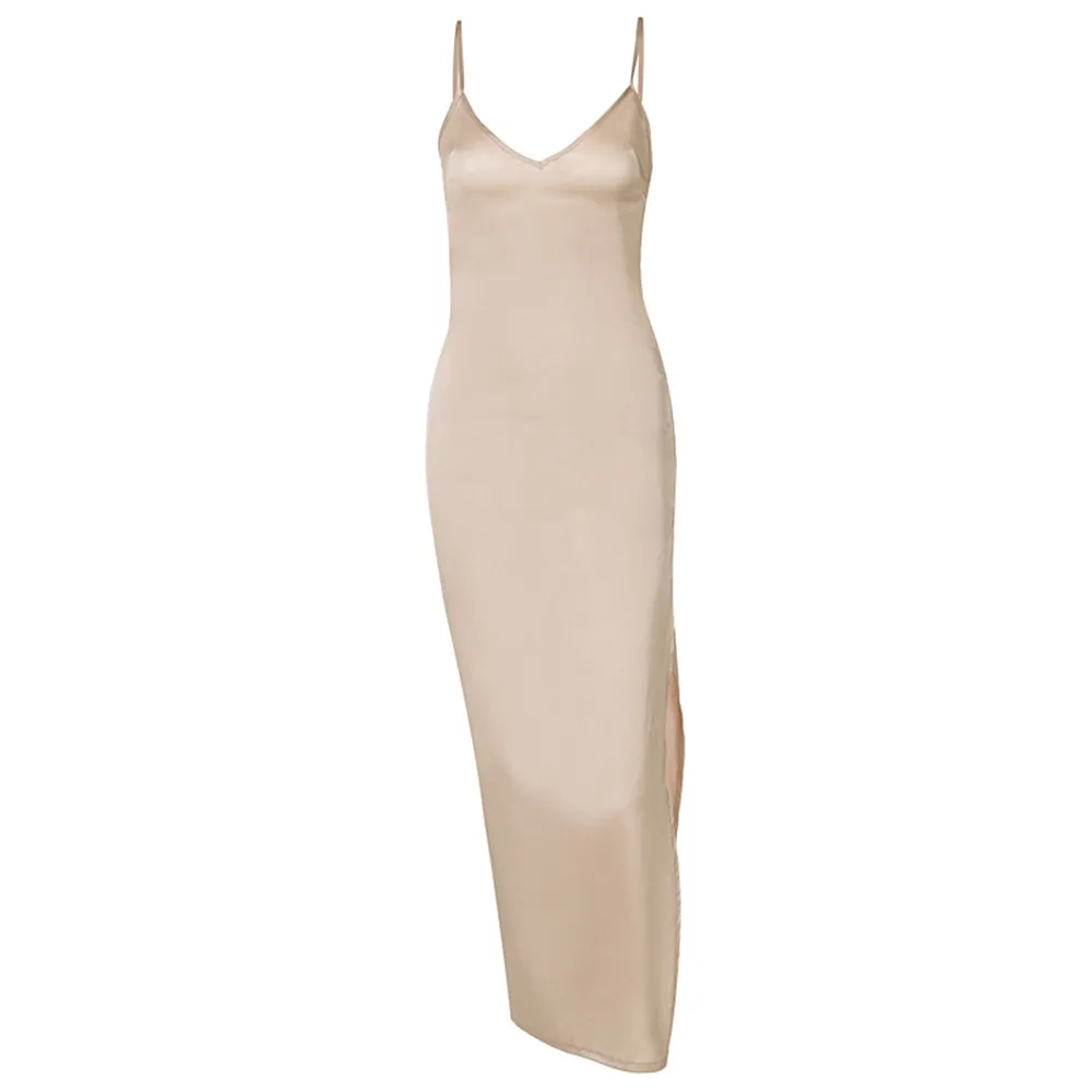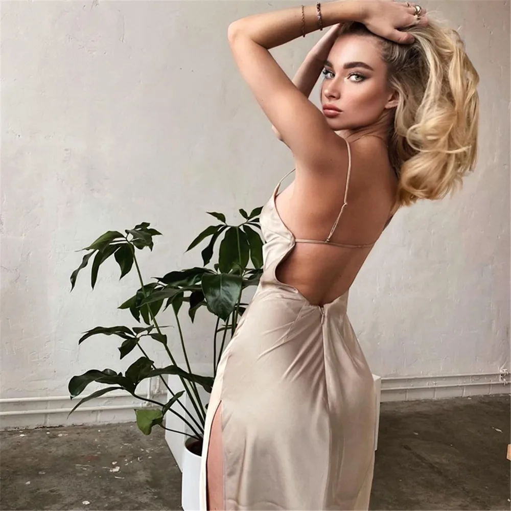 Summer Women Satin Silky Spaghetti Strap Split Long Dress Elegant Sleeveless Backless Club Party Beach Sexy Vestito 2021