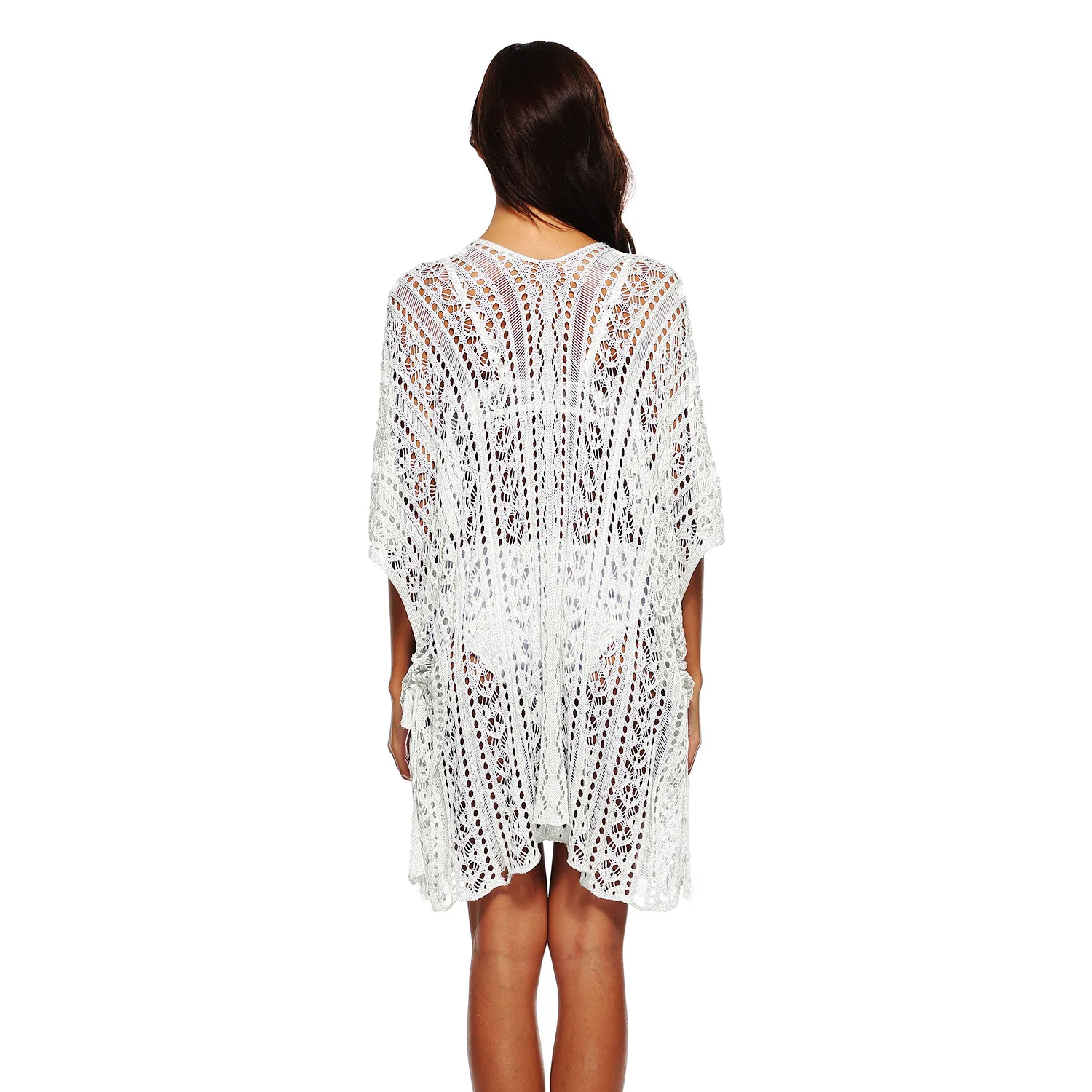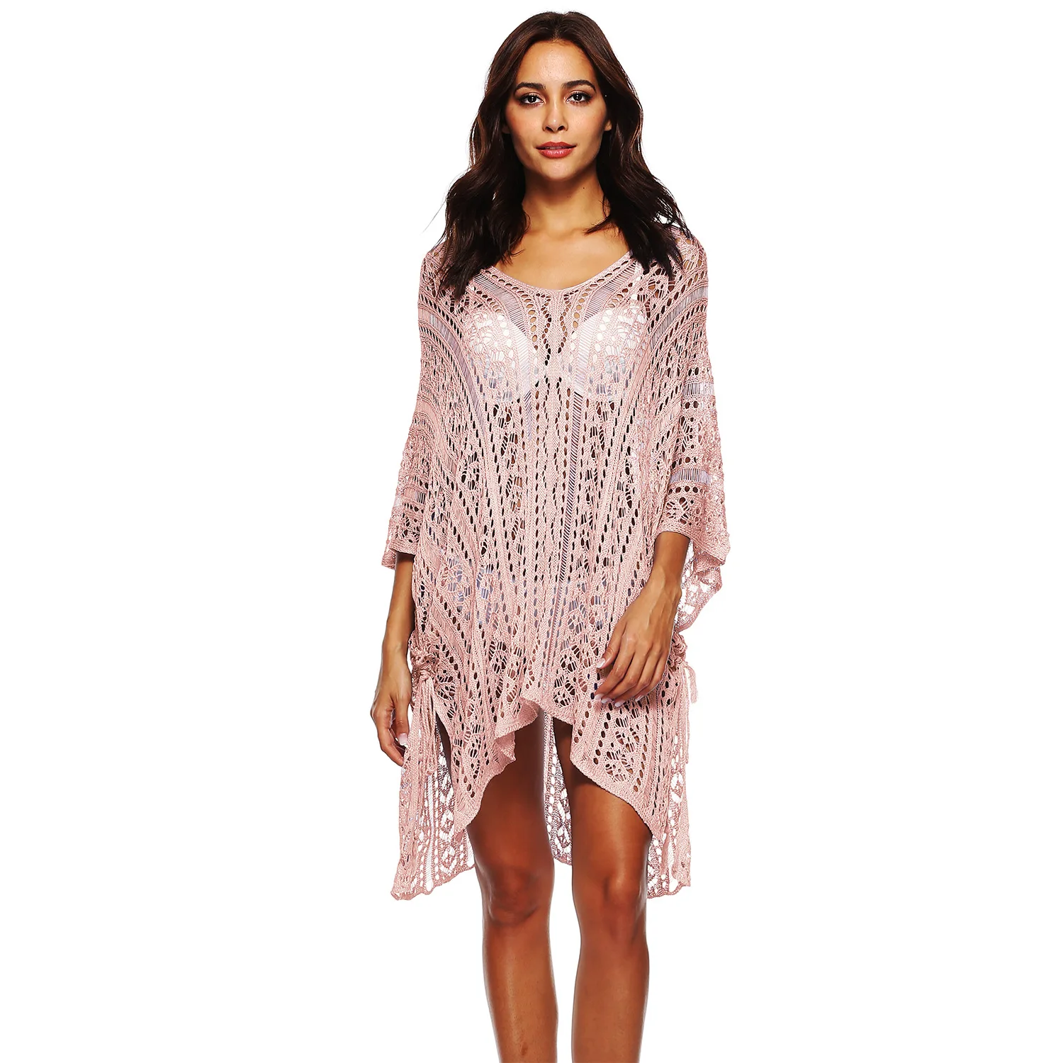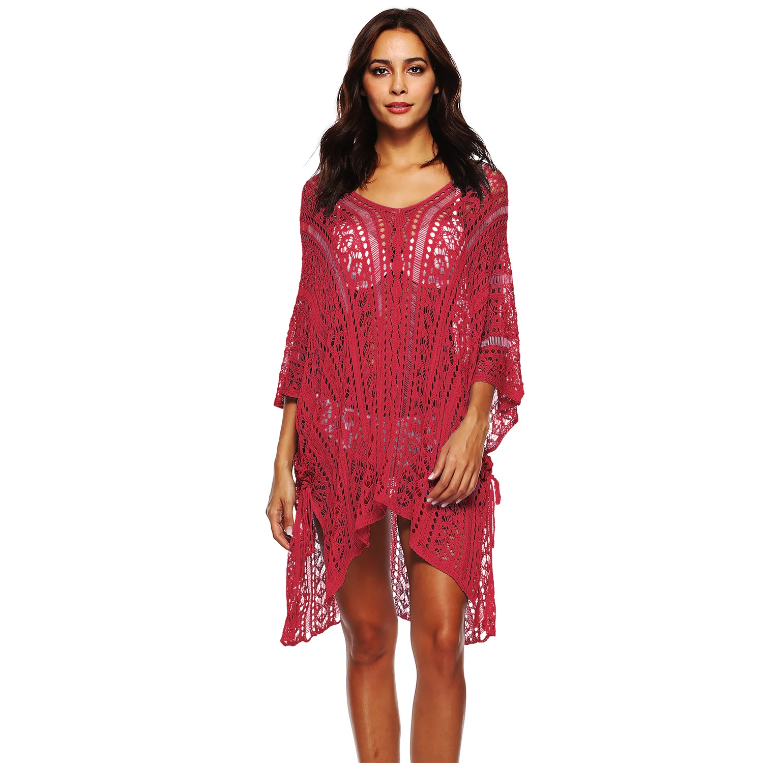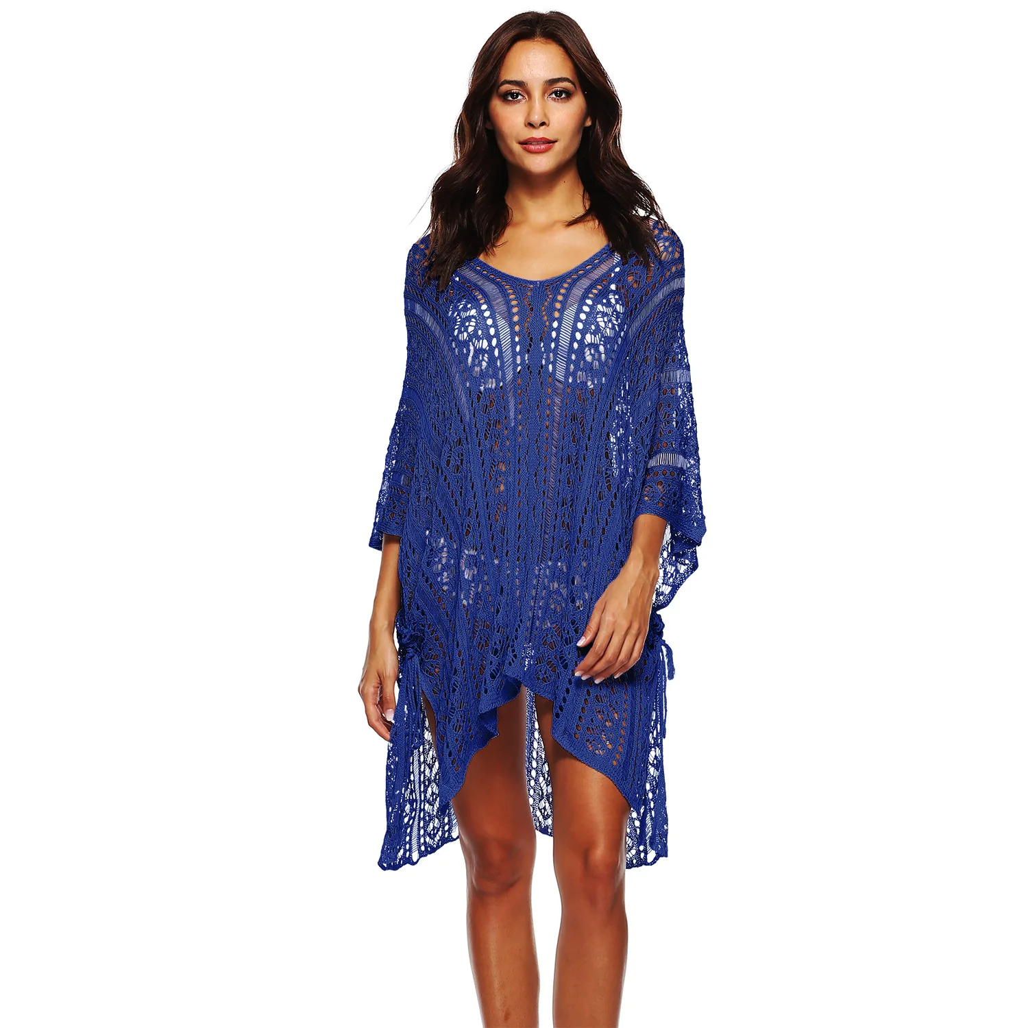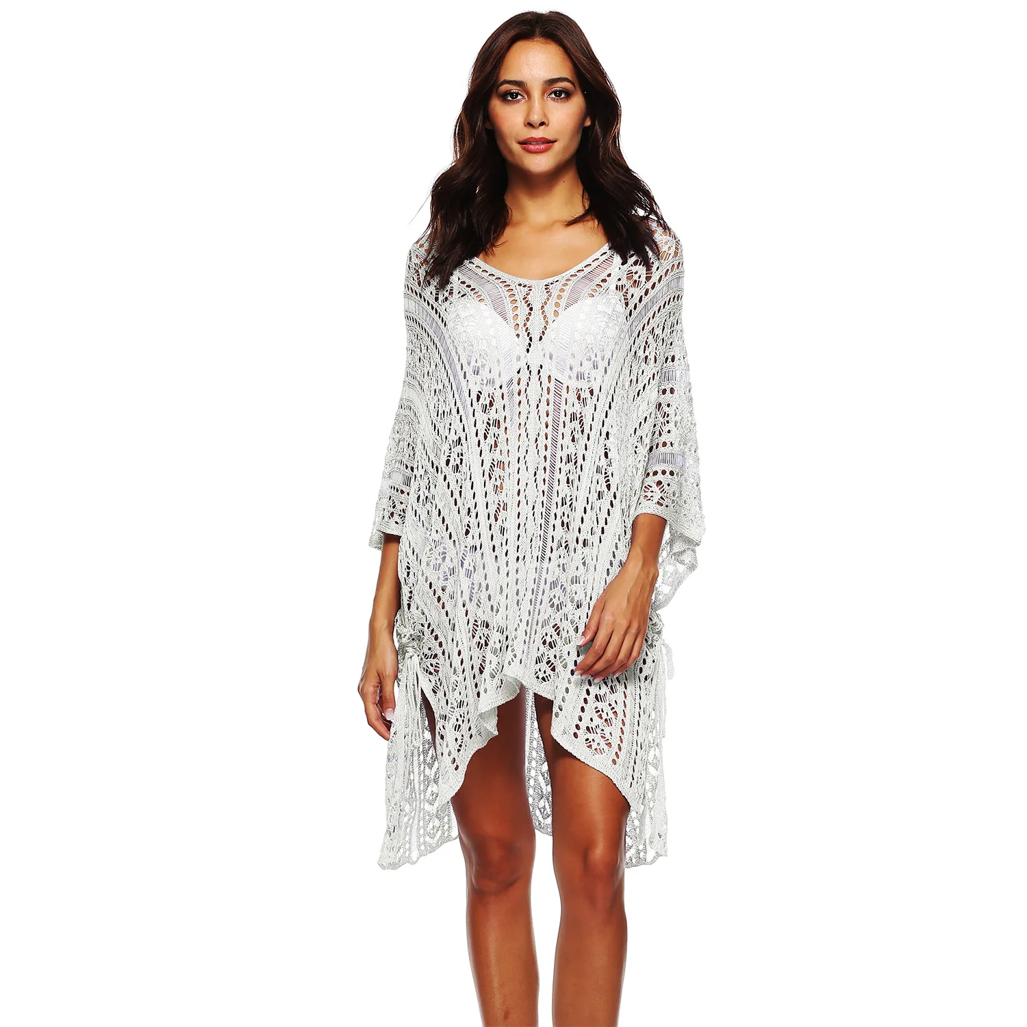 Summer women's dress 2021 with crocheted cutout V-neck bat-sleeve irregular beach dress sunblock blouse