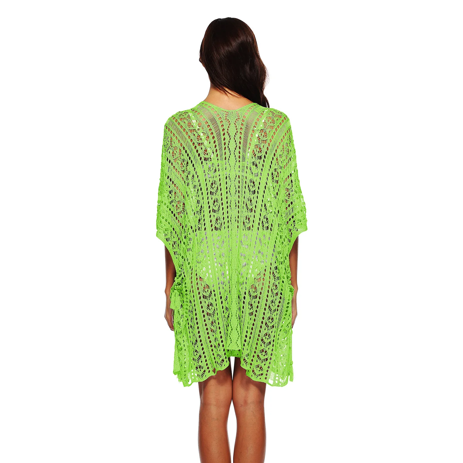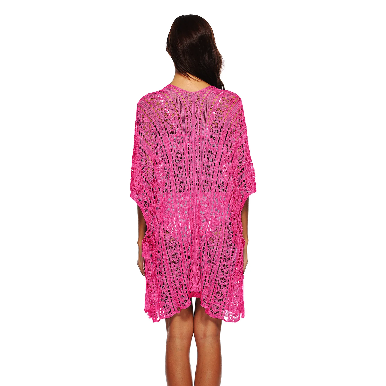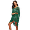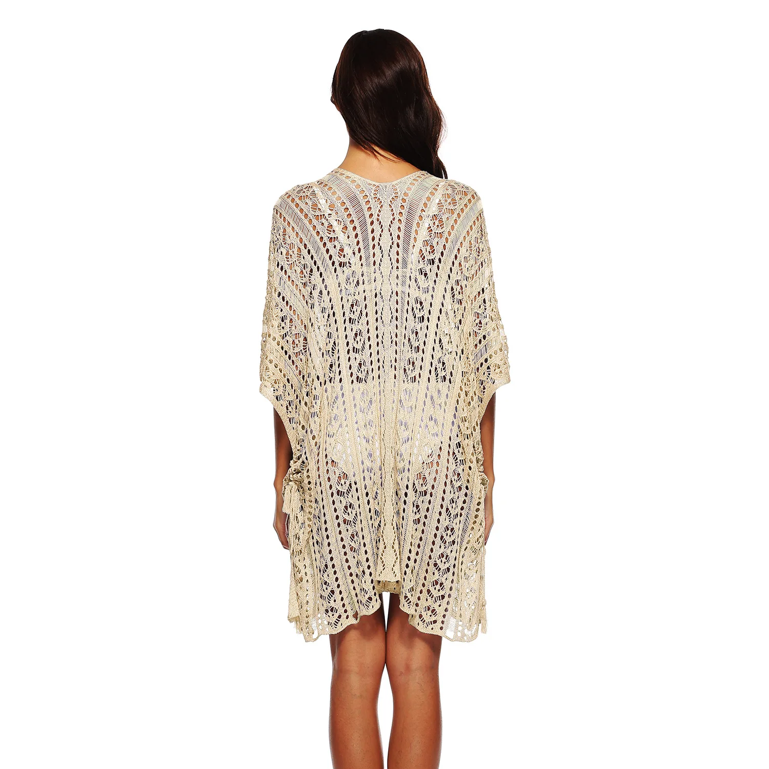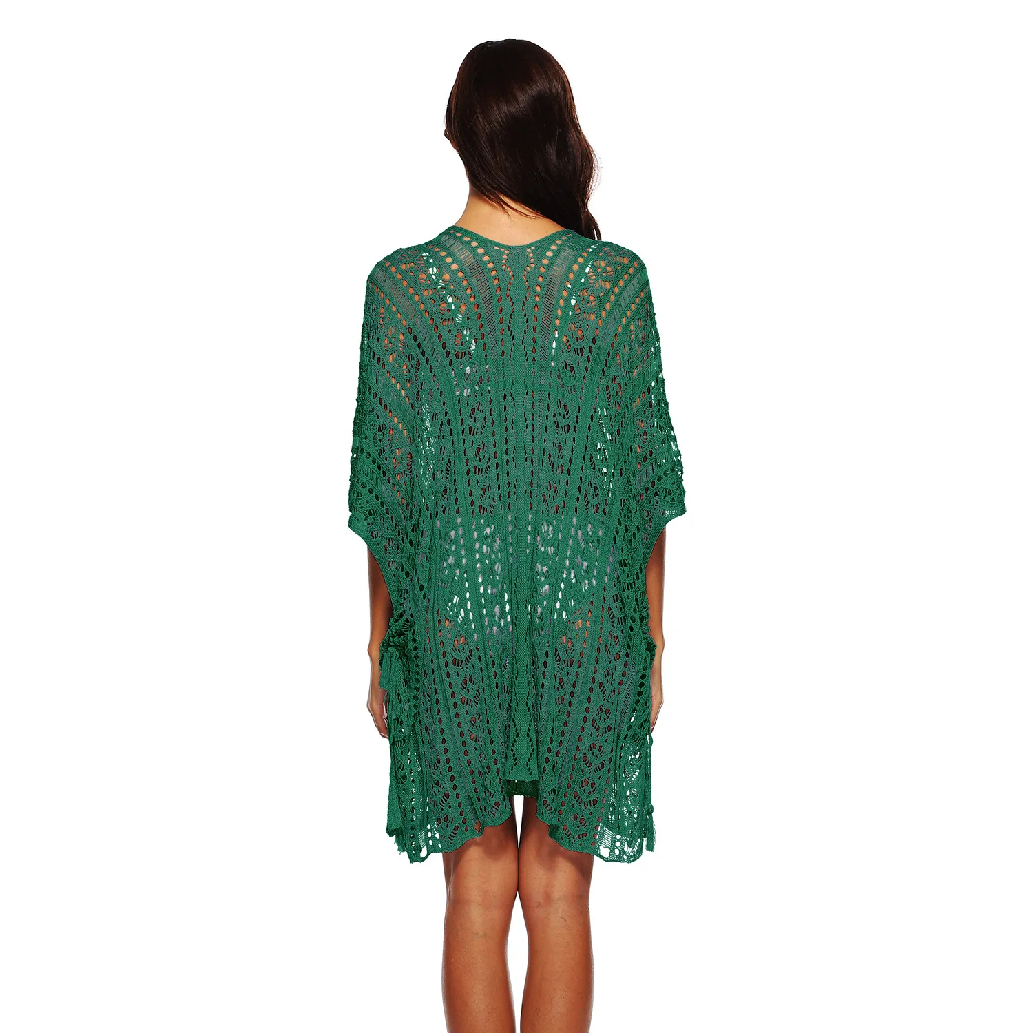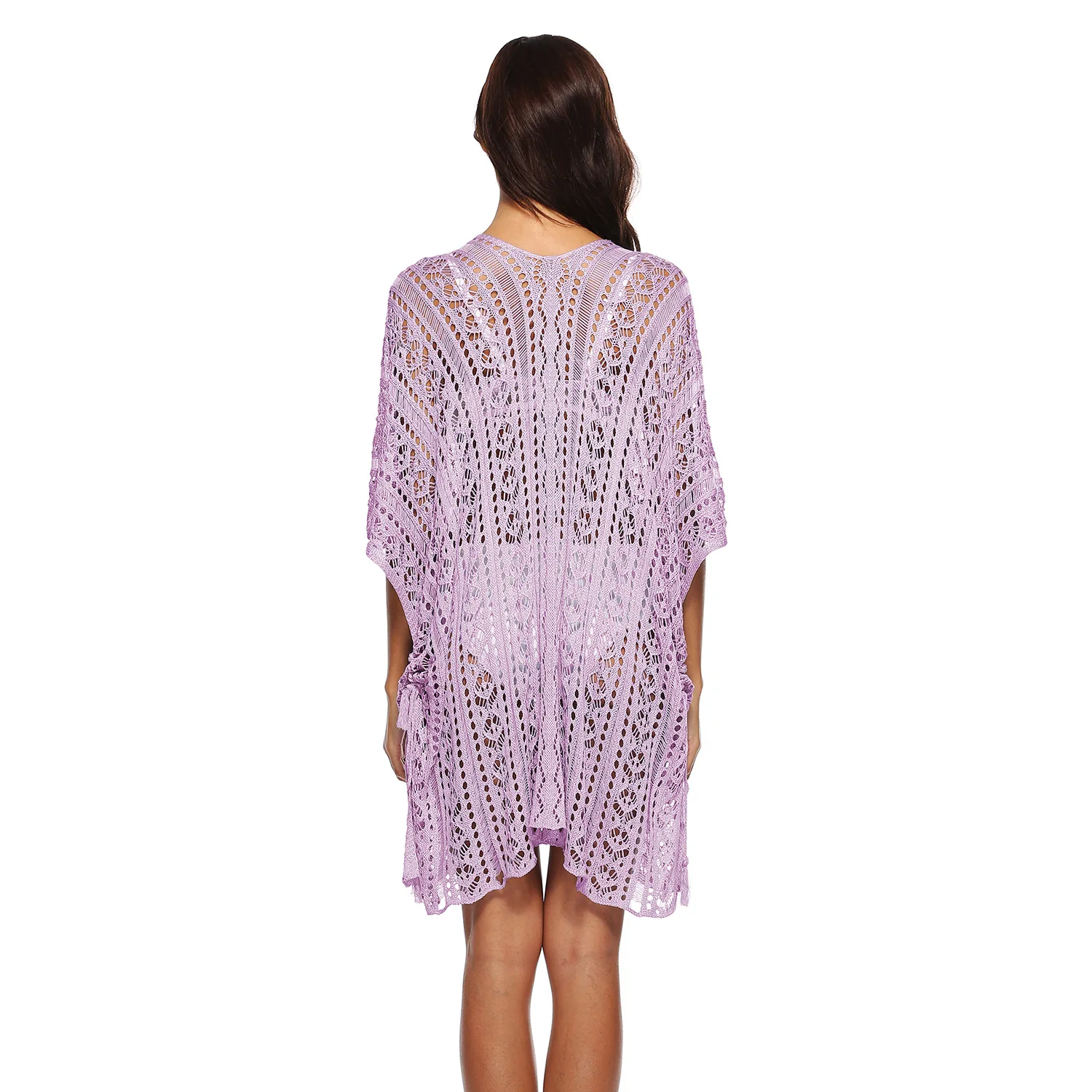 Summer women's dress 2021 with crocheted cutout V-neck bat-sleeve irregular beach dress sunblock blouse