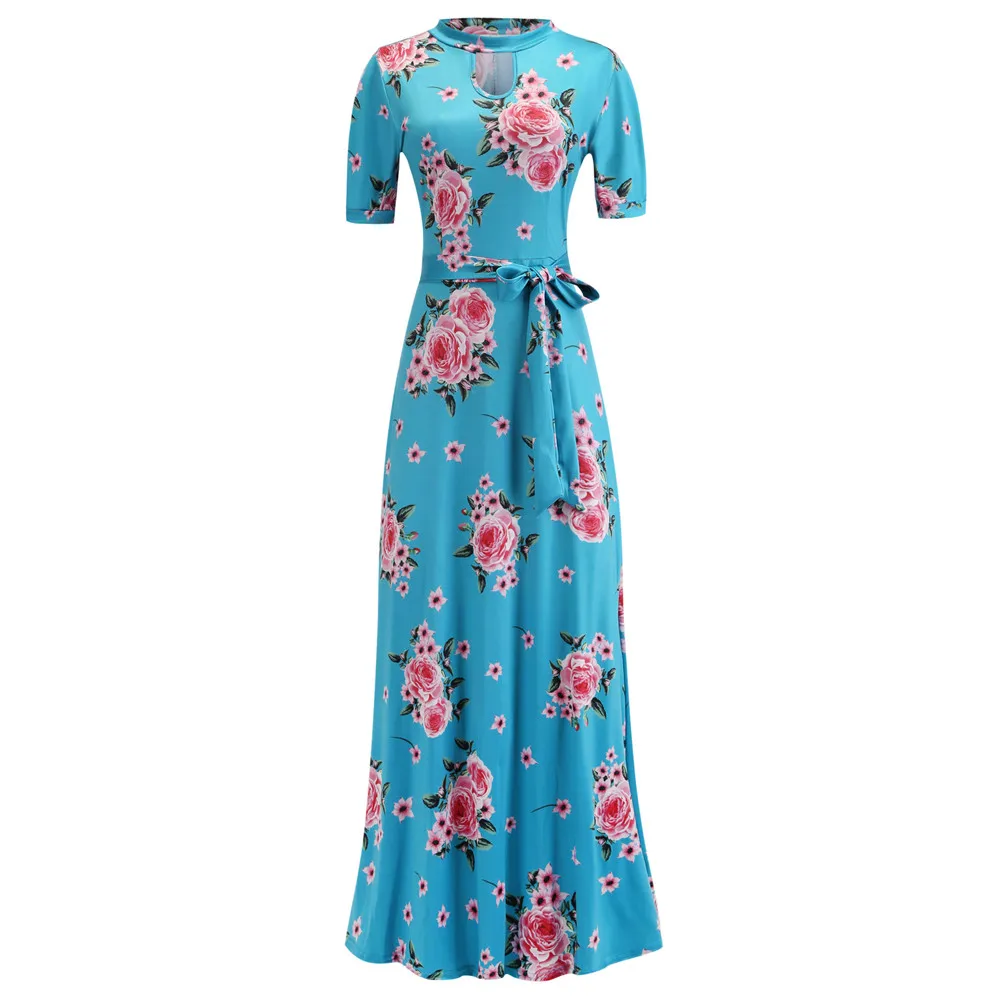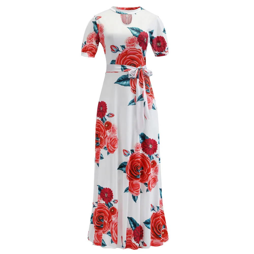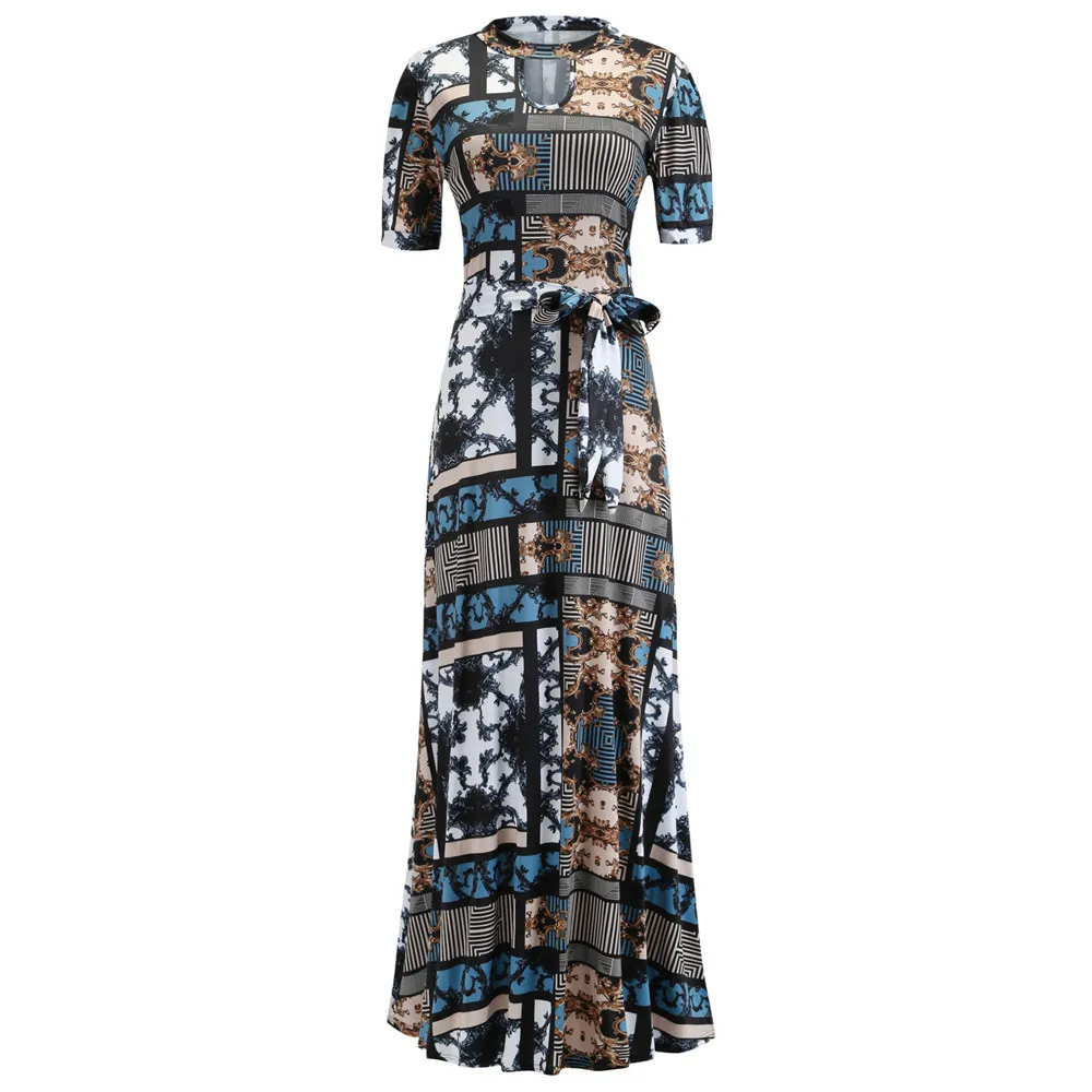 Summer Women's Dress Casual Multicolor Digital Print Lace Up Sexy Ladies Swing Dress 5XL vestidos elegantes para mujer платье