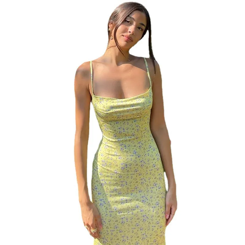 Summer Women's Dresses European And American Slim Back Sling Floral Ladies Long Dress Sexy Fashion Party 2022 New Ladies Dresses