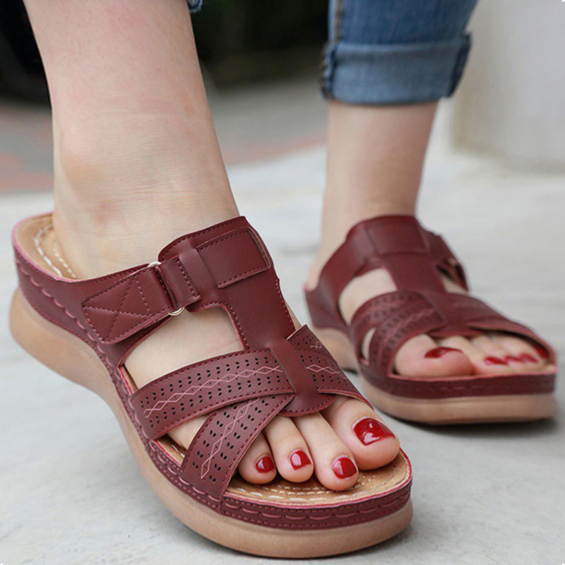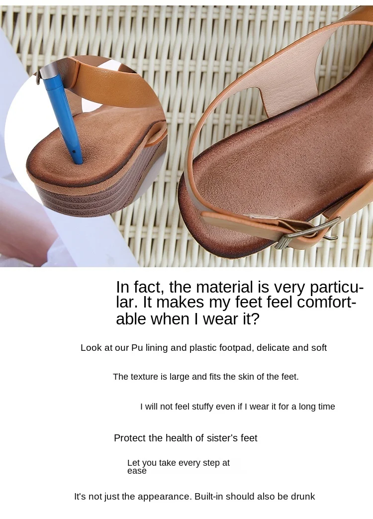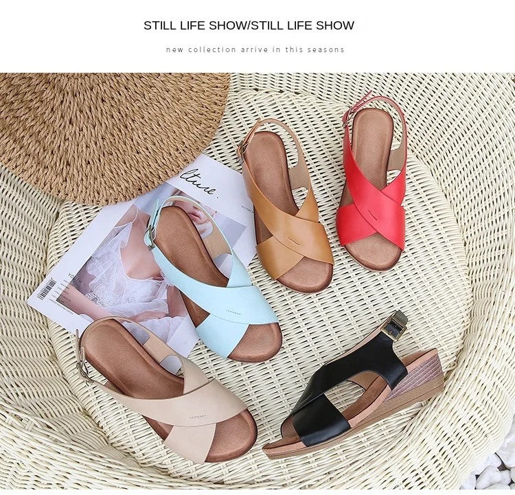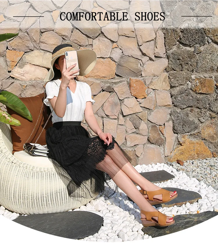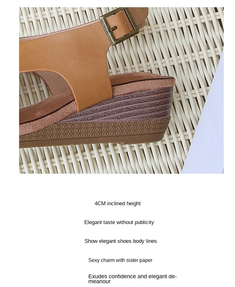 Summer women's sandals casual and comfortable side hollow shoes buckle wedge round toe sandals women's shoes