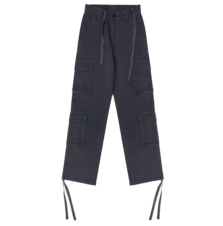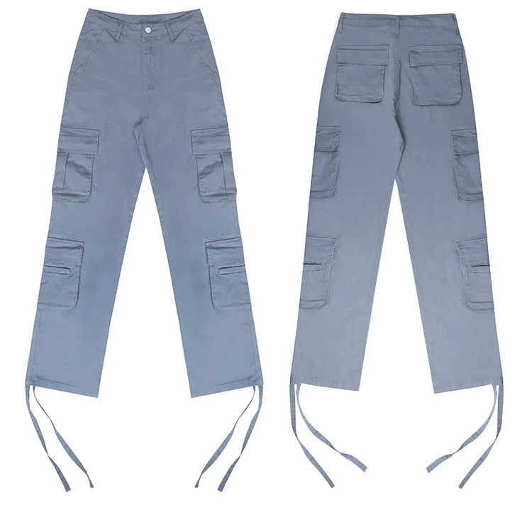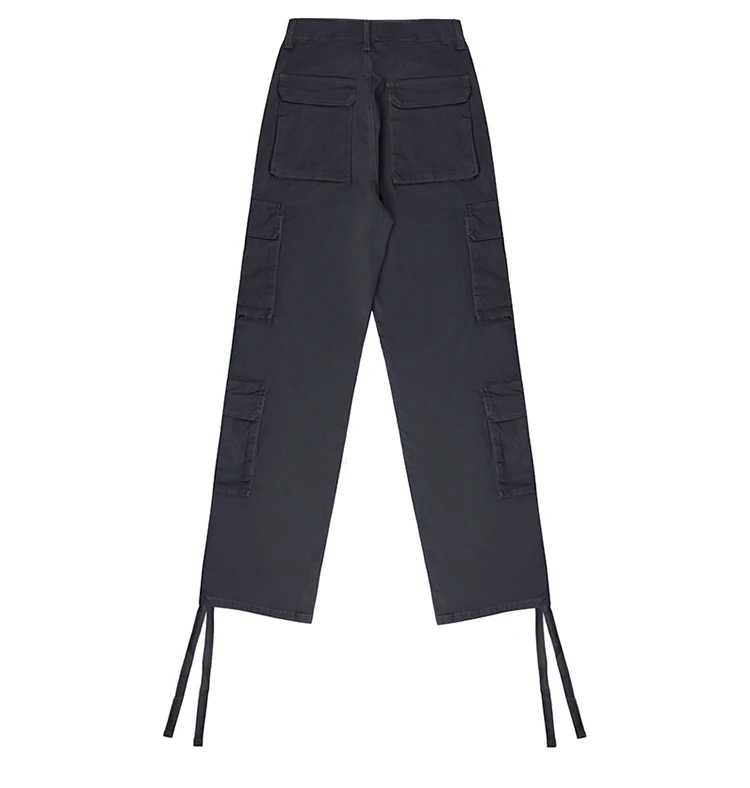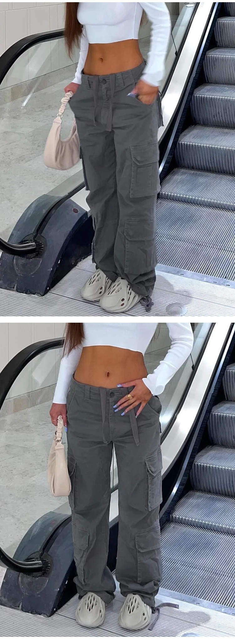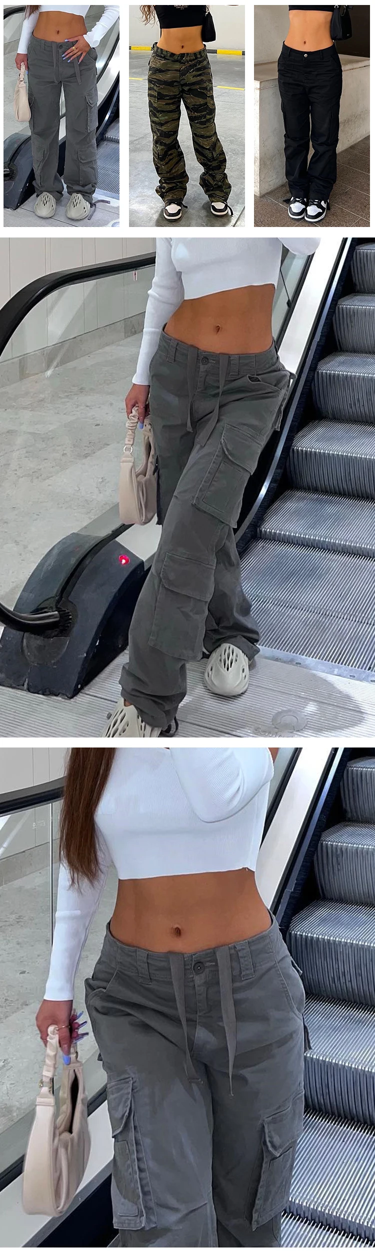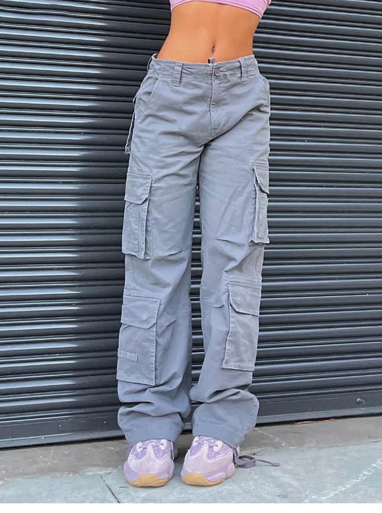 Summer Womens Vintage Grey Cargo Pants High Waist Wide Leg Jeans Baggy Casual Fashion Multiple Pockets Mom Hip Hop Street Style