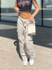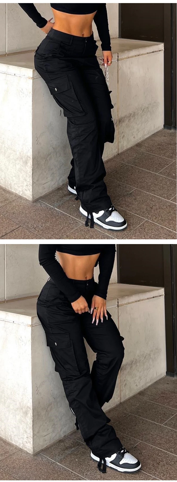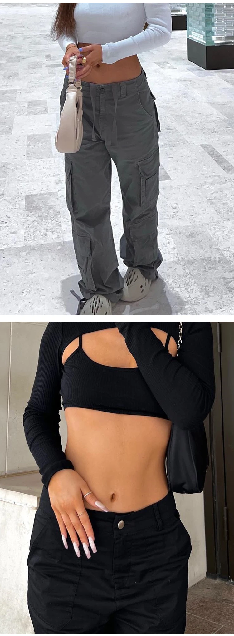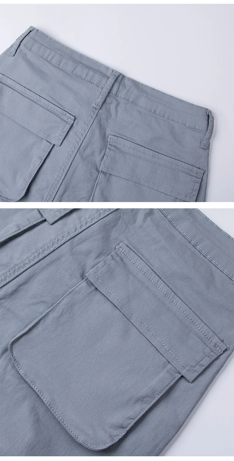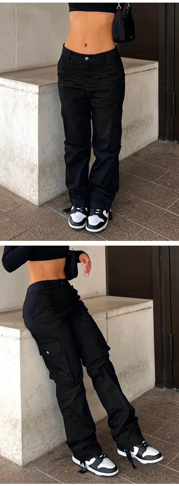 Summer Womens Vintage Grey Cargo Pants High Waist Wide Leg Jeans Baggy Casual Fashion Multiple Pockets Mom Hip Hop Street Style