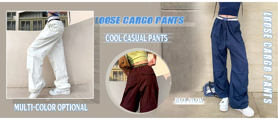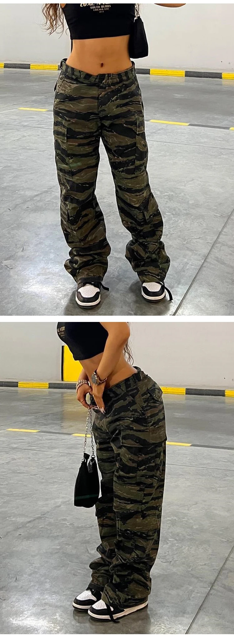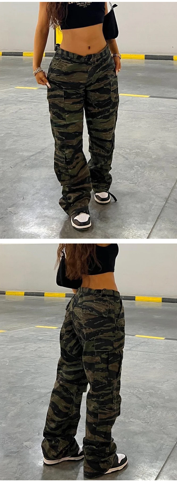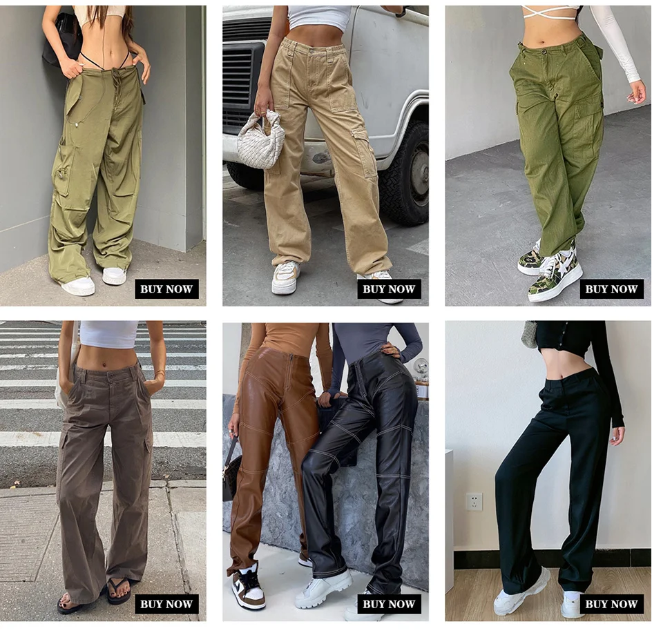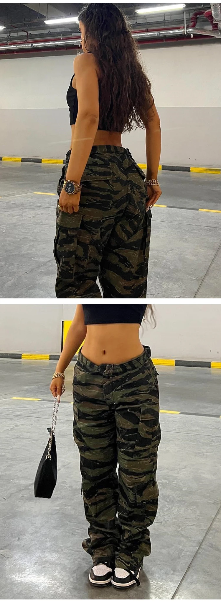 Summer Womens Vintage Grey Cargo Pants High Waist Wide Leg Jeans Baggy Casual Fashion Multiple Pockets Mom Hip Hop Street Style